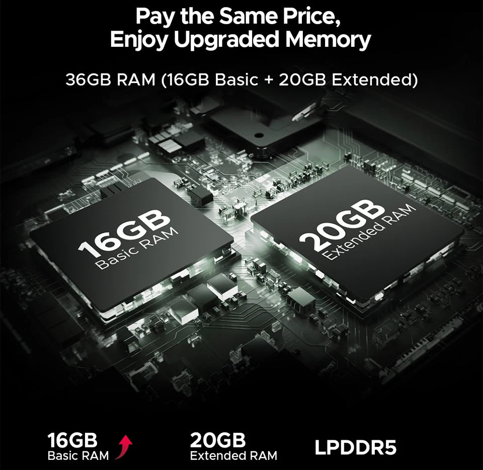 - 36 GB RAM (16 GB + bis zu 20 GB erweiterbar) und 512 GB internem Speicher – viel Multitasking-Puffer und ausreichend Platz für Fotos, Videos und Apps; Unterstützung von MicroSD-Karten bis 2 TB.