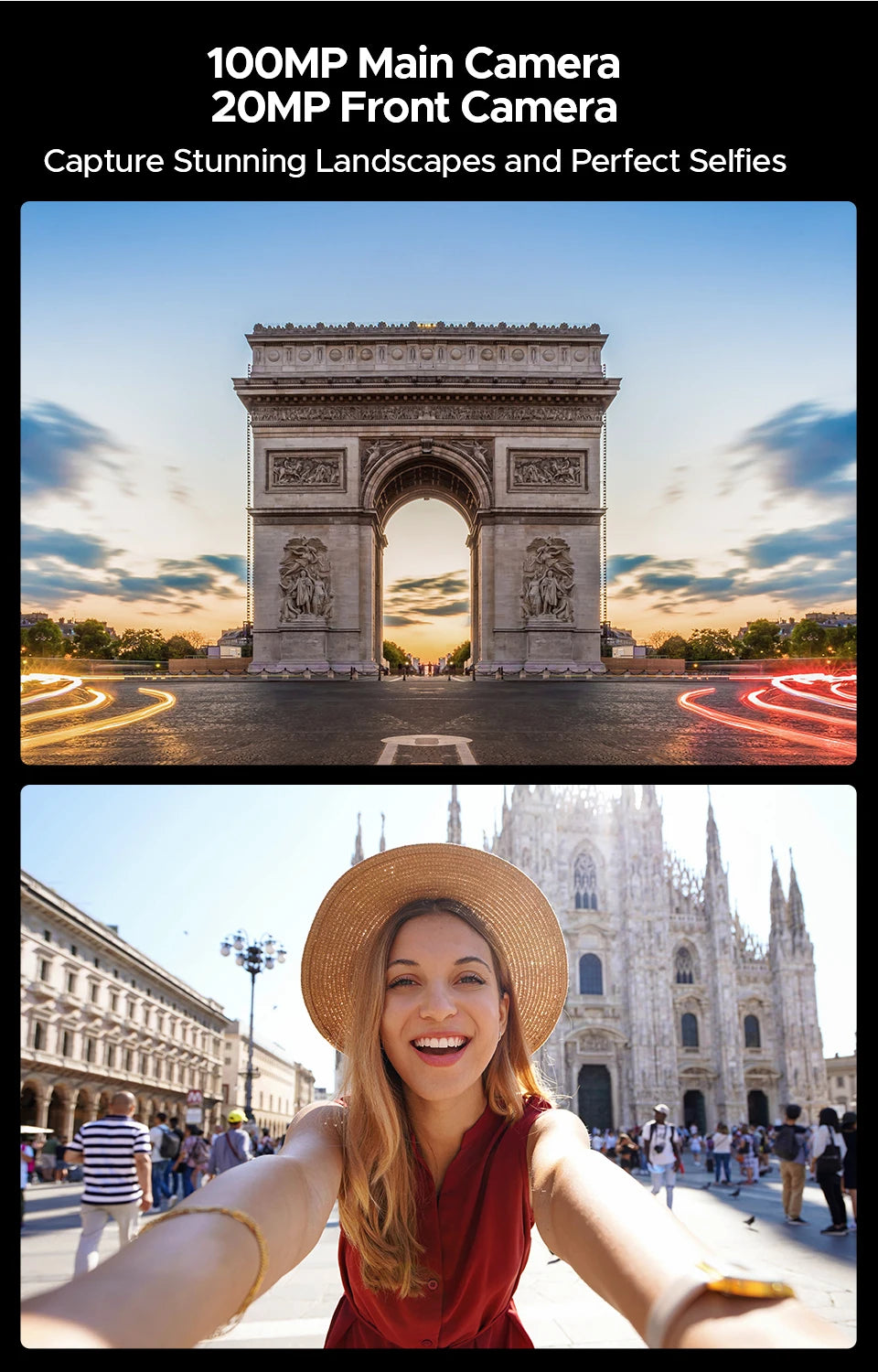 - AI-Triple-Kamera: 100 MP Hauptsensor, 20 MP Zweitkamera und 2 MP Drittkamera für detailreiche Aufnahmen auch bei schlechten Lichtverhältnissen.