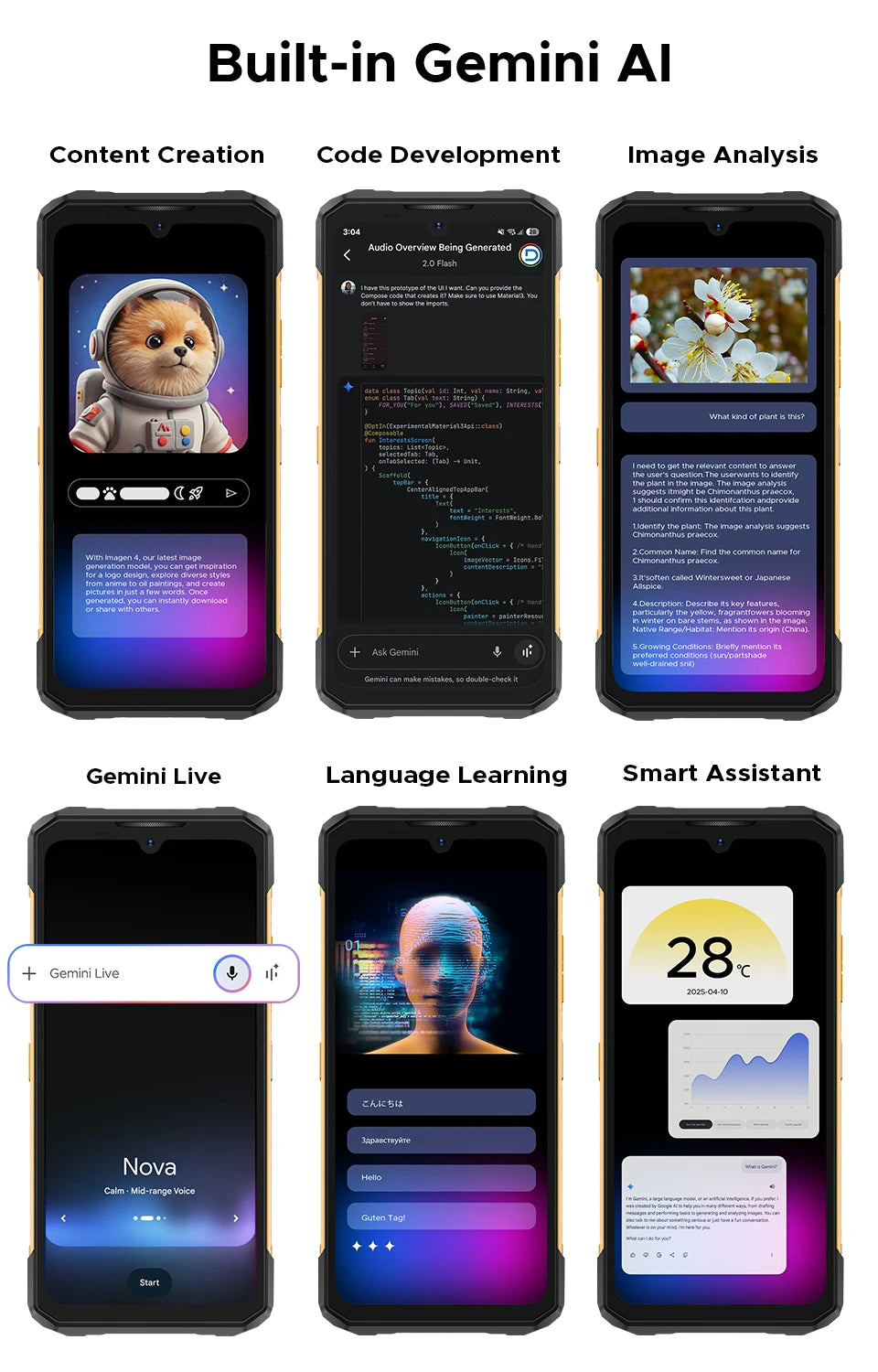 - Gemini AI-Unterstützung: intelligente Assistenten-Funktionen helfen bei Fotoaufnahmen, Organisieren von Terminen und Optimierung von Ressourcen.