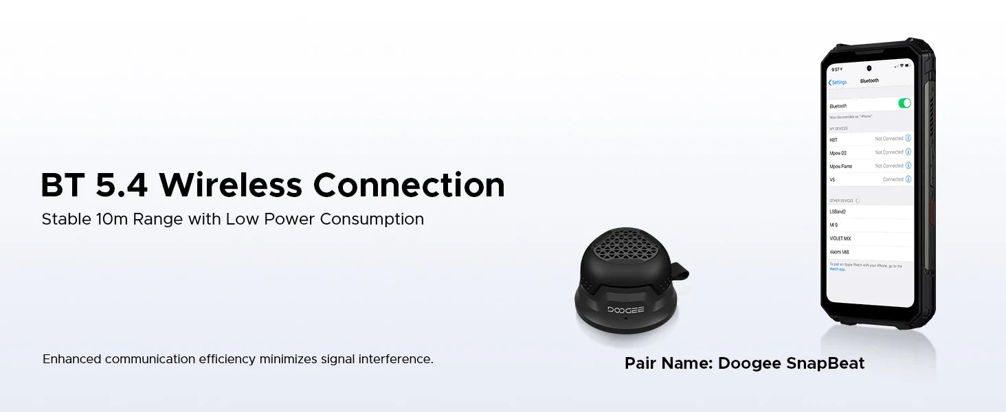 Der DOOGEE SnapBeat ist ein ultrakompakter Bluetooth-Lautsprecher mit magnetischer Halterung, der Musik in klarer Stereoqualität direkt zu Ihnen bringt. Er verbindet sich zuverlässig mit Ihrem Smartphone, Tablet oder Laptop über Bluetooth 5.4, lädt über USB-C in kurzer Zeit auf und begleitet Sie durch den Alltag – egal ob zu Hause, im Büro oder unterwegs. Dank kompakter Bauweise, langlebigem Akku und einem robusten Gehäuse ist er der ideale Begleiter für alle, die guten Klang in der Tasche schätzen.