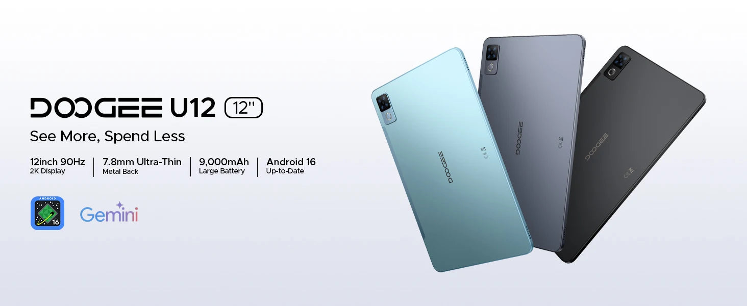 Der DOOGEE U12 Ultra Dünn ist ein leistungsstarkes Tablet-PC mit einem großzügigen 12 Zoll Display, einem extrem langlebigen 9000 mAh Akku und moderner Leistungsfähigkeit. Er kombiniert Mobilität, Produktivität und Multimedia-Entertainment in einem ultradünnen Gehäuse, das sich bequem in Tasche oder Rucksack verstauen lässt. Damit lösen Sie den Spagat zwischen großem Bildschirm für Arbeit und kompakter Tragbarkeit für unterwegs – ohne Kompromisse bei Geschwindigkeit, Speicher oder Konnektivität. Mit dem DOOGEE U12 Ultra erleben Sie maximale Vielseitigkeit in einem schlanken Format – ideal für Produktivität, Streaming und Gaming unterwegs.