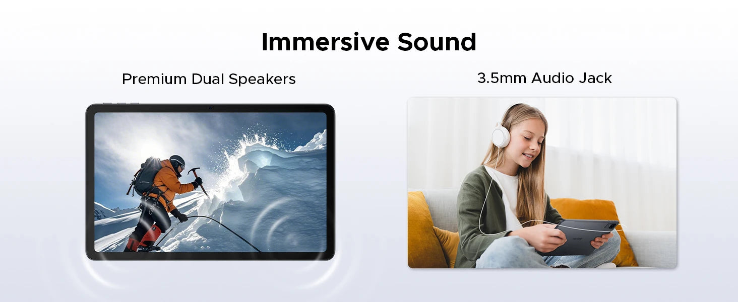 - Dual-Lautsprecher liefern klaren Klang beim Video-Streaming und Musik