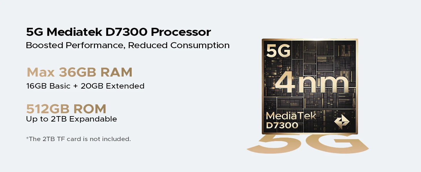 - Flüssige Performance durch den Octa-Core-Prozessor MTK Dimensity 7300 für Multitasking, Kartennavigation und Mess-Apps in Echtzeit.