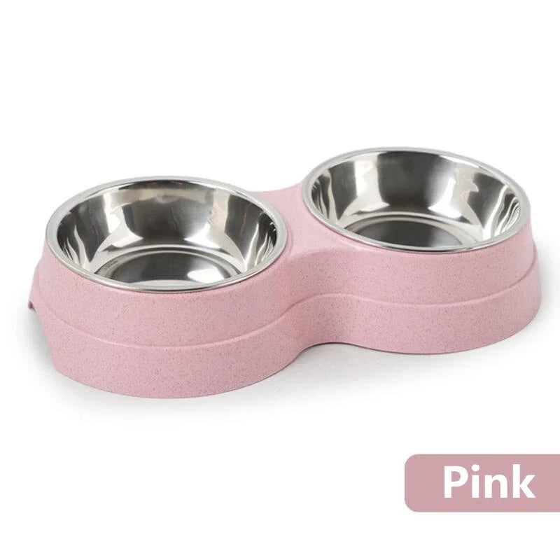 Dual pet bowl dog food water dispenser dual-purpose stainless steel pet water dispenser type cat and puppy feeding supplies