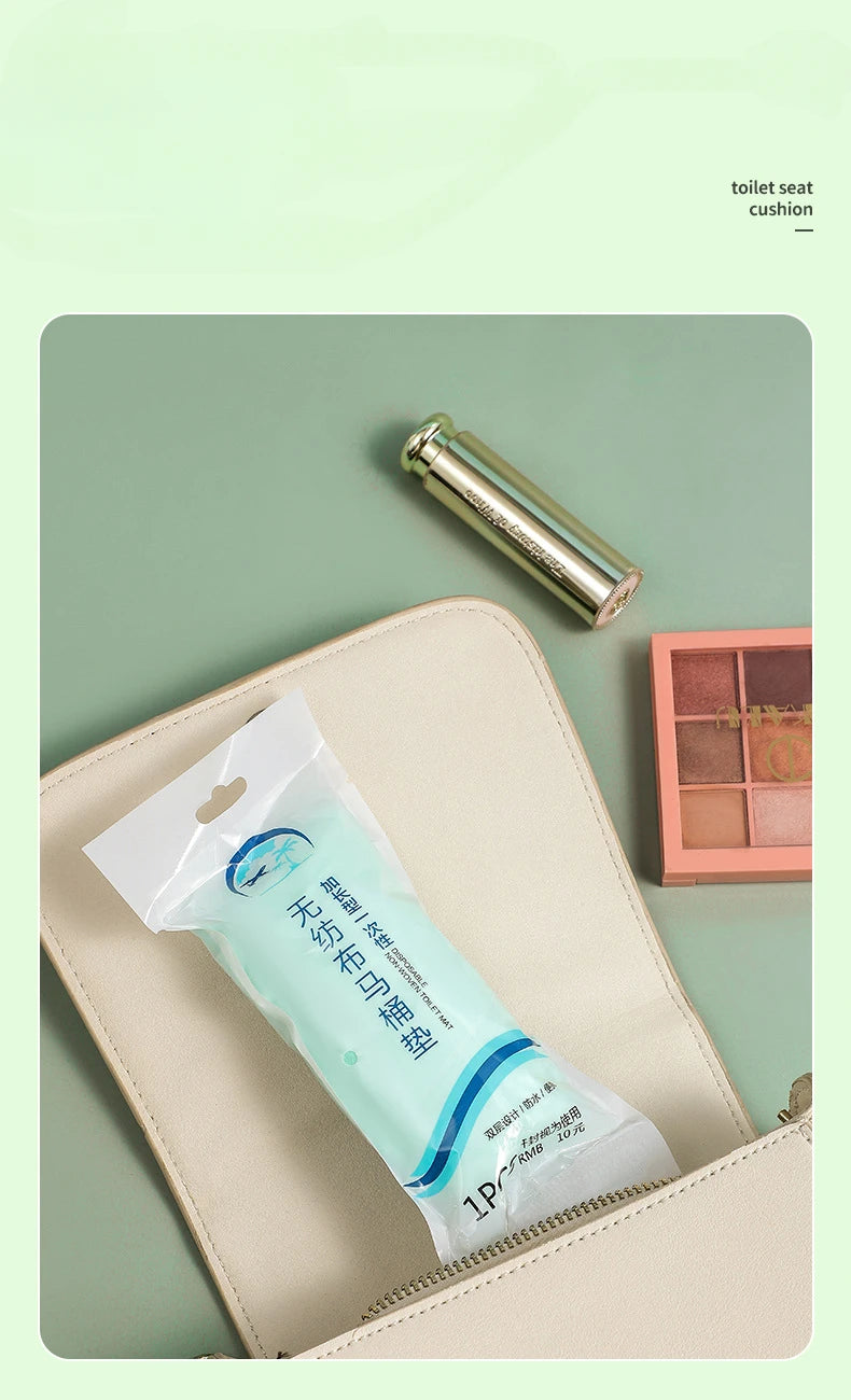 Einweg-Toilettensitzbezug aus weichem Vliesmaterial für hygienische Nutzung in öffentlichen Sanitärbereichen und auf Reisen.