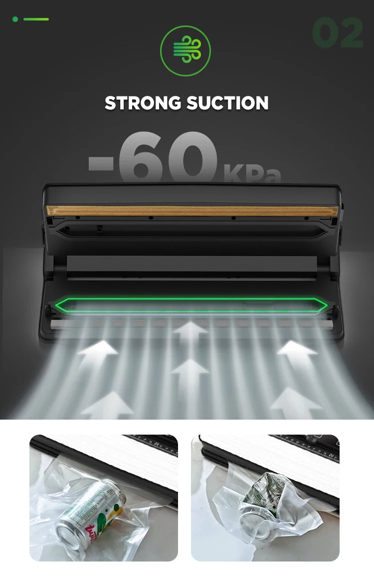 Effiziente Konservierung und verlängerter Halt durch leistungsstarkes Doppelpumpen-Vakuum-System und präzise Thermal-Sealing-Technologie.