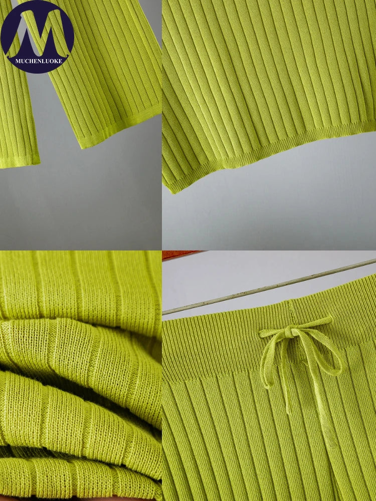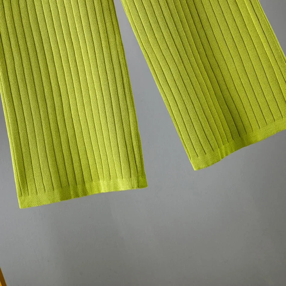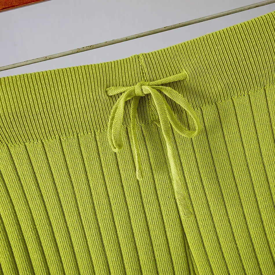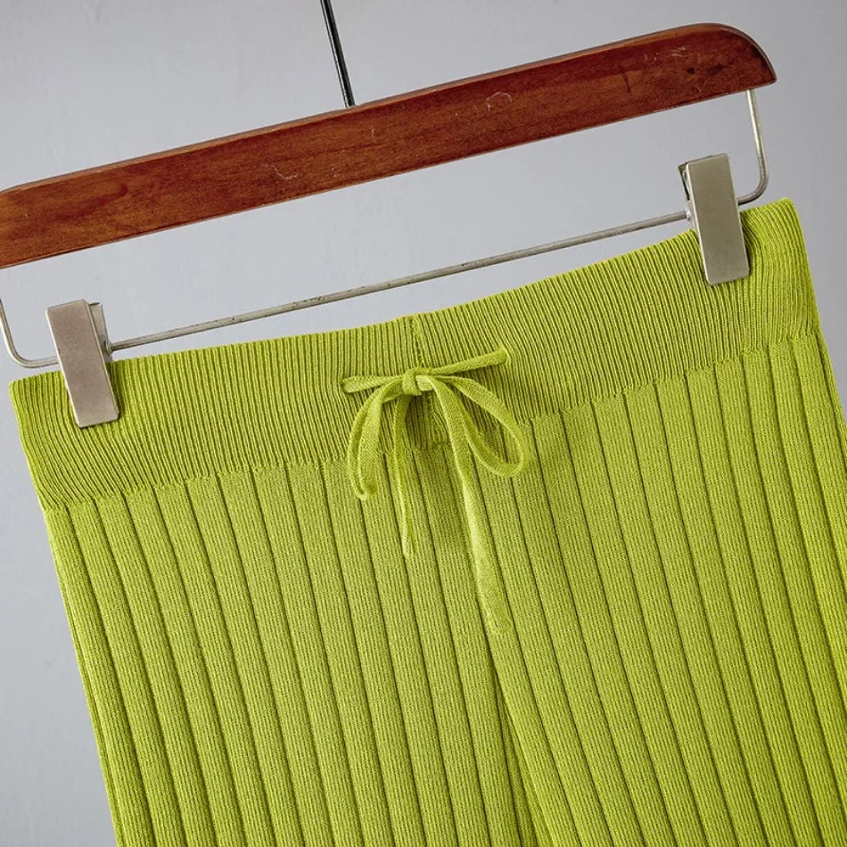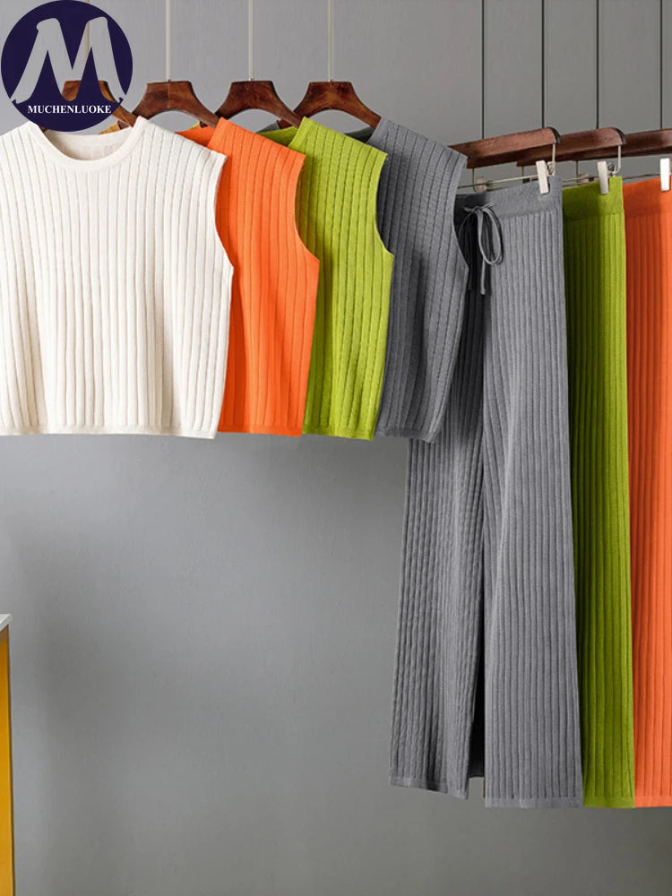 Elegant 2-Piece Sets for Women, Casual Knitting, Sleeveless, O Neck Tops, Loose Lace Up, Wide Leg Pant Set, Summer Fashion, New