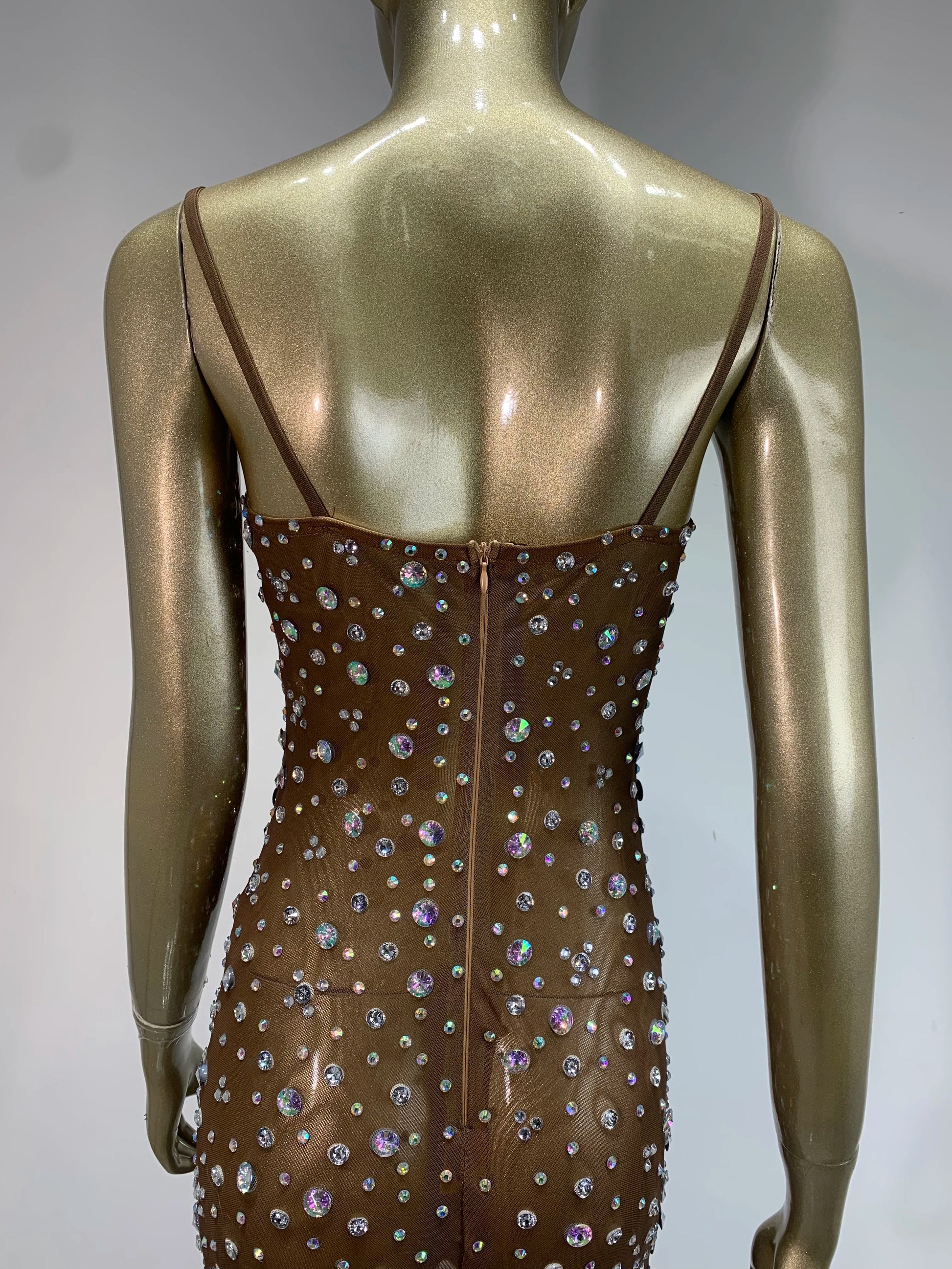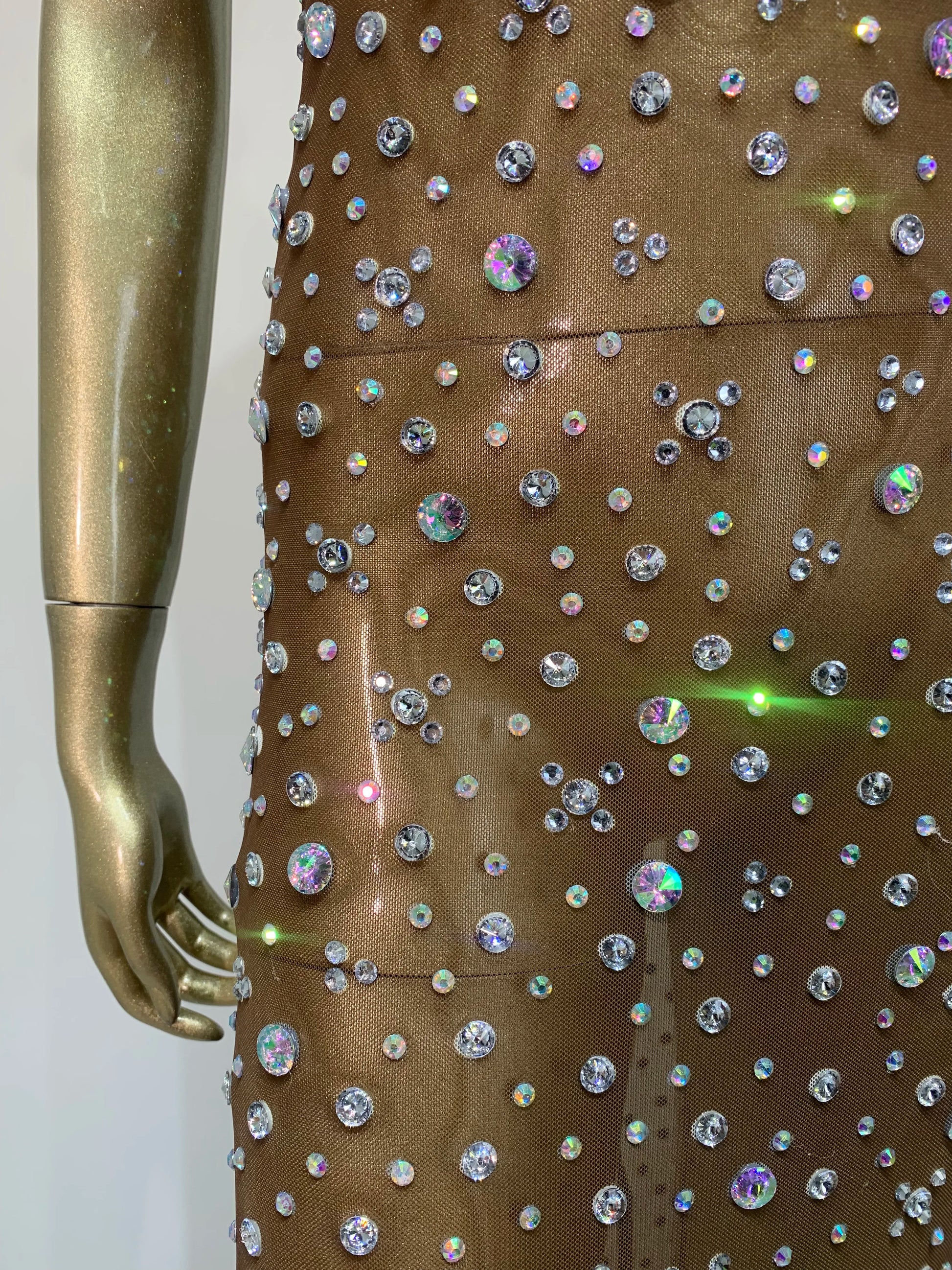 - Modell: Aurelia Elegantes Kleid Transparent - Strass Ärmellos S