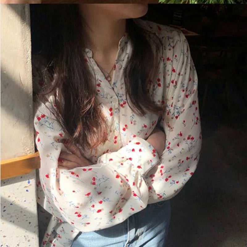 Elegant Floral Delicate Charm Blouse Women Chiffon Sweetheart Puff Sleeves Shirt Office Ready O Neck Single Breasted Tops