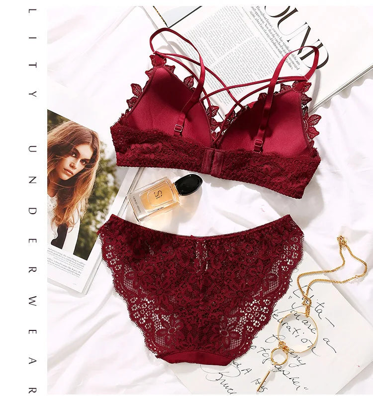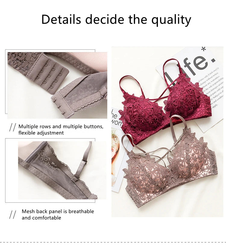 BH-Set 2025: elegant Spitzen-BH Damen Unterwäsche-Set Ohne Bügel Push Up Bralette - Nahtlos Atmungsaktiv Spitze Lingerie Schlaf-Unterwäsche