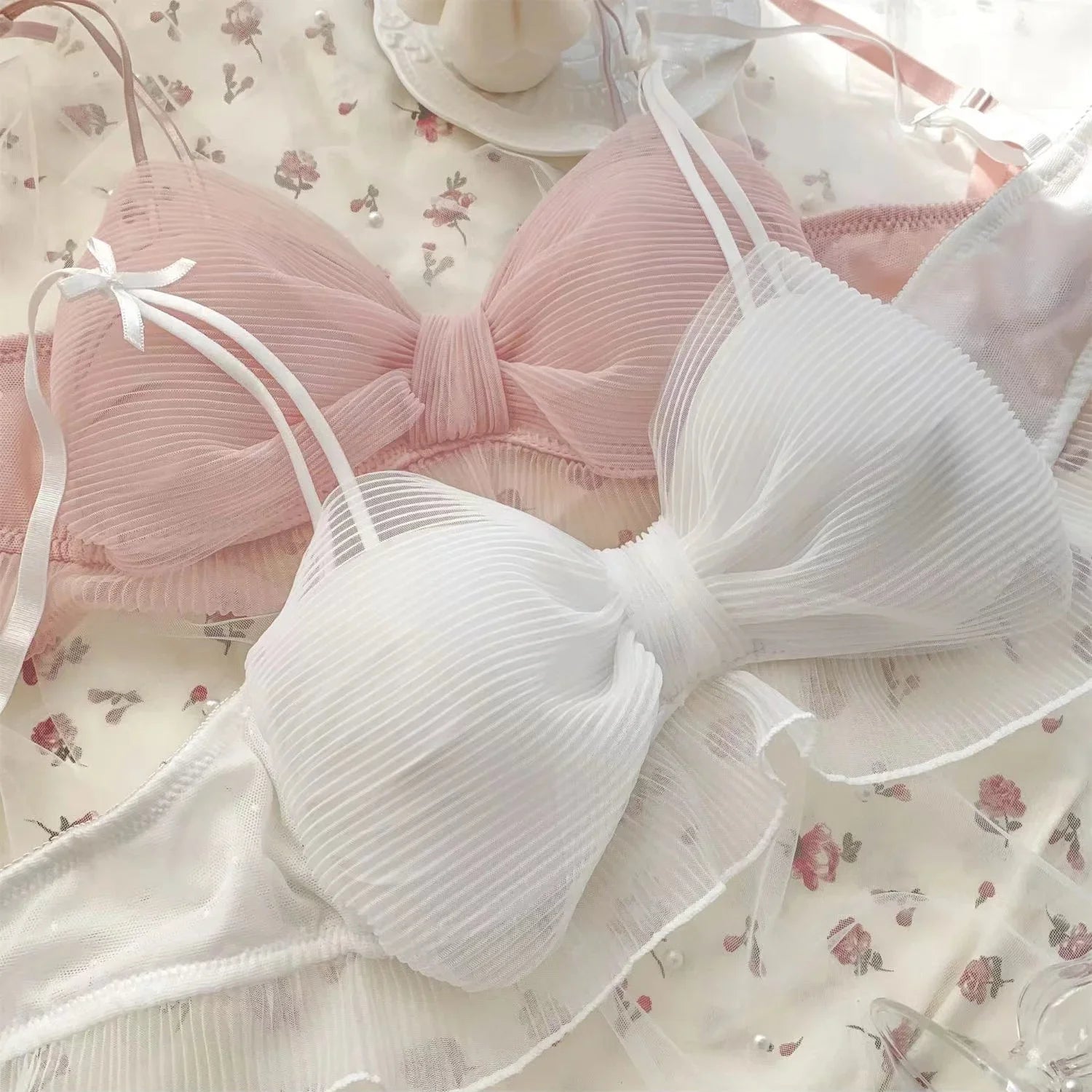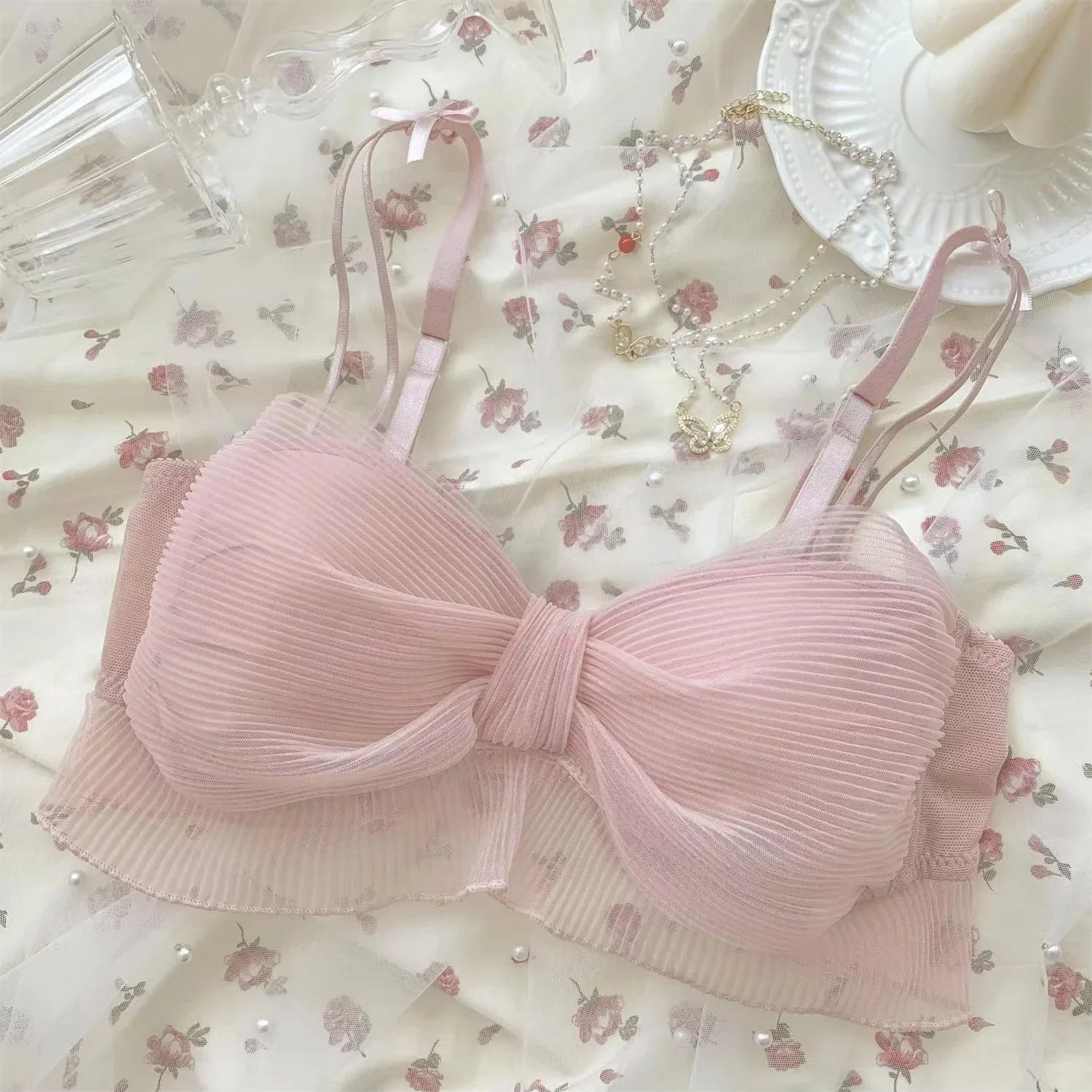 elegant Spitze Tüll Bikini Push Up BH Schleife Damen Unterwäsche Weiblich elegant Japanisch Süß Drahtlos Lingerie Mädchen Komfortabel Bralette
