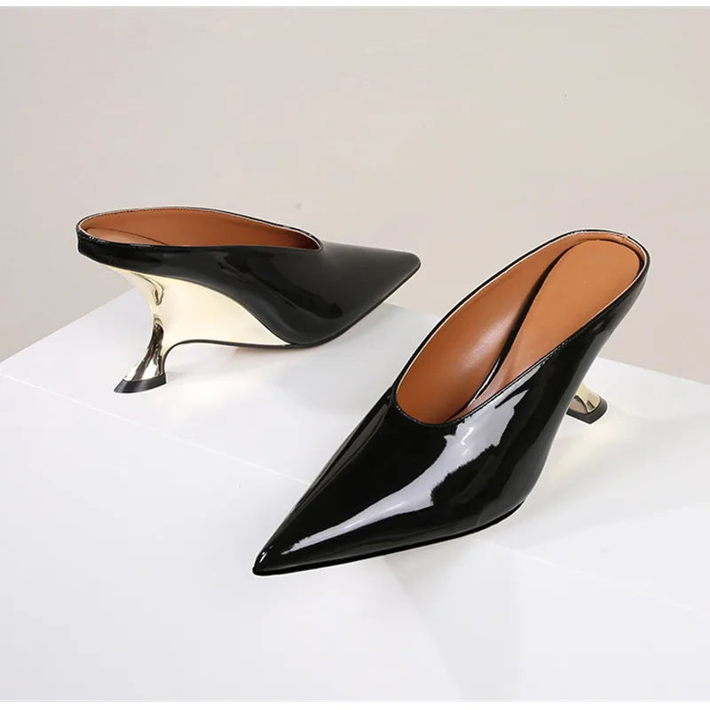Elegant Pointed Toe Women Slippers Shoes Designer Shallow Fashion Spring Autumn Wedges High Heels Banquet Mule Zapatos De Mujer