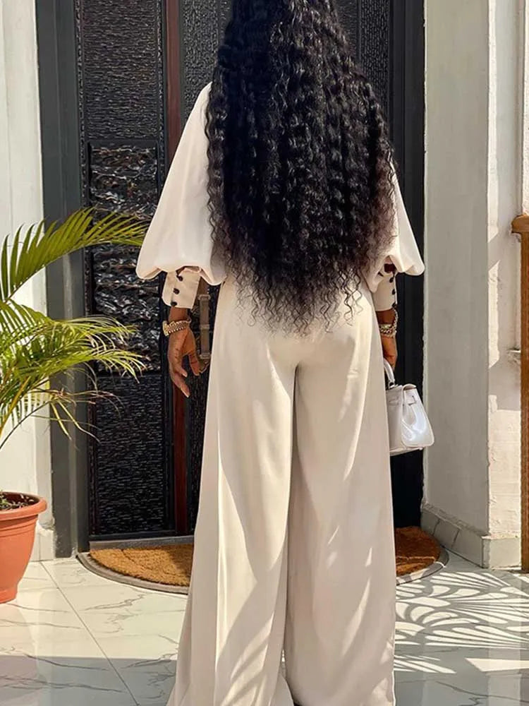 Elegant Women's Sets Two Pieces Solid Color Set Autumn Spring Piece Long Sleeve Loose Blouse and Pants Female Suit Bourgeois