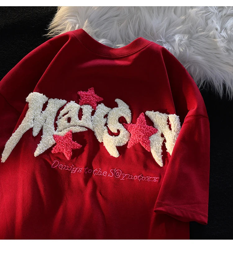 Embroidery Letter Fashion T-shirts for Women Summer 2024 American Vintage Women's Tee Shirt Fun Print Design Y2k Tops