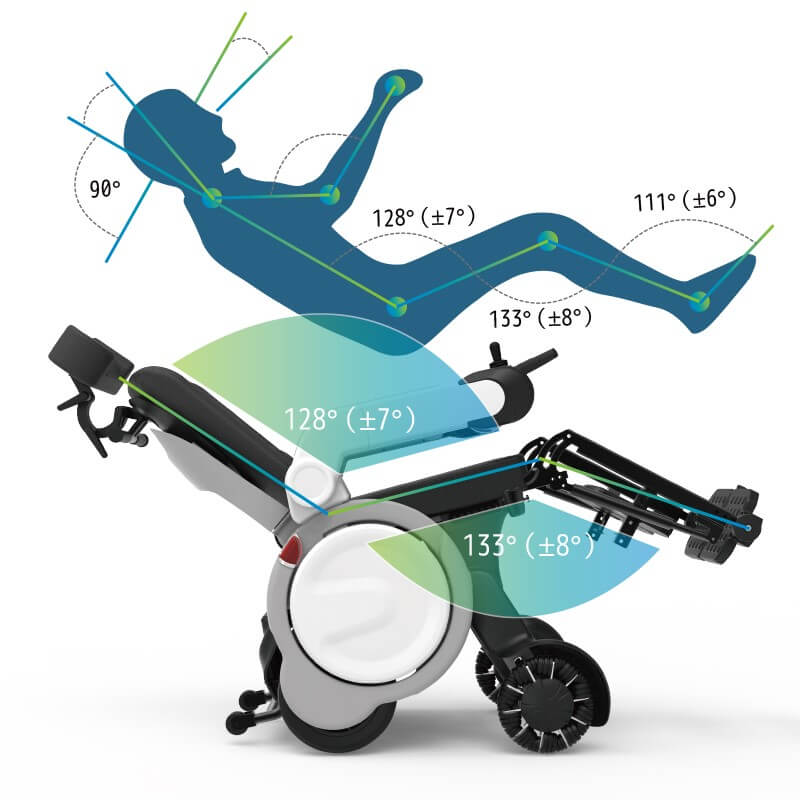 - Individuell einstellbar: Rückenlehne, Sitzneigung und Fußstützen elektrisch verstellbar.