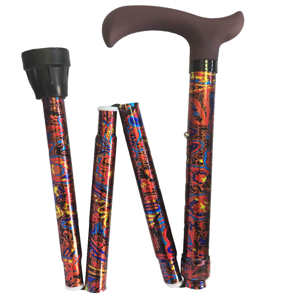 Der Faltstock Design ist die perfekte Kombination aus Funktionalität, Komfort und Stil. Mit seinen modernen Mustern – z. B. Black & White, Bluemary, Cashmere Fantasie, Forest, Flore oder Indira – wird dieser Gehstock zu einem modischen Accessoire für jeden Tag. Dank seiner leichten und faltbaren Bauweise ist er der ideale Begleiter für unterwegs, im Alltag oder auf Reisen.