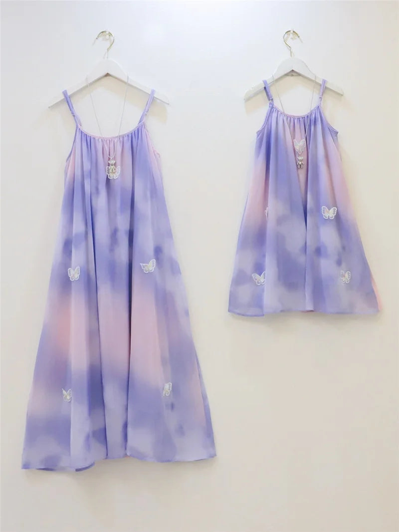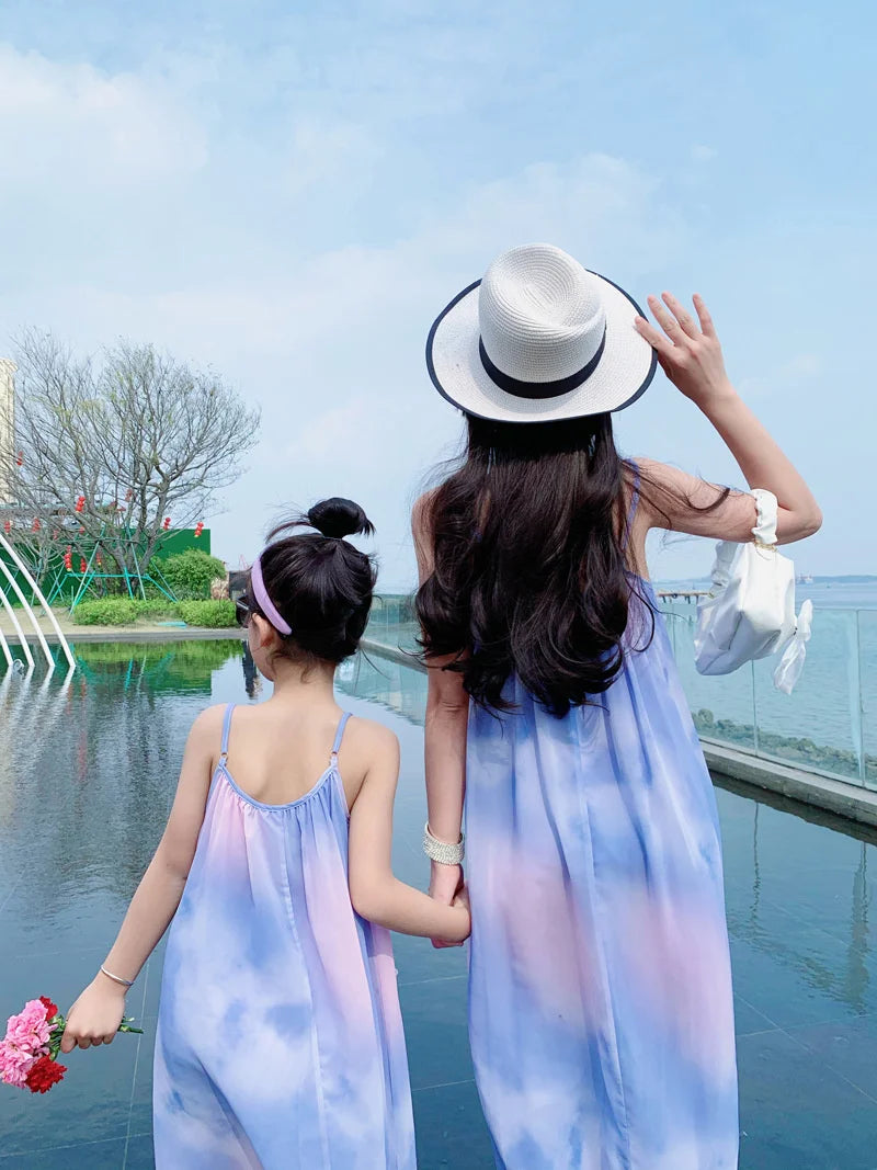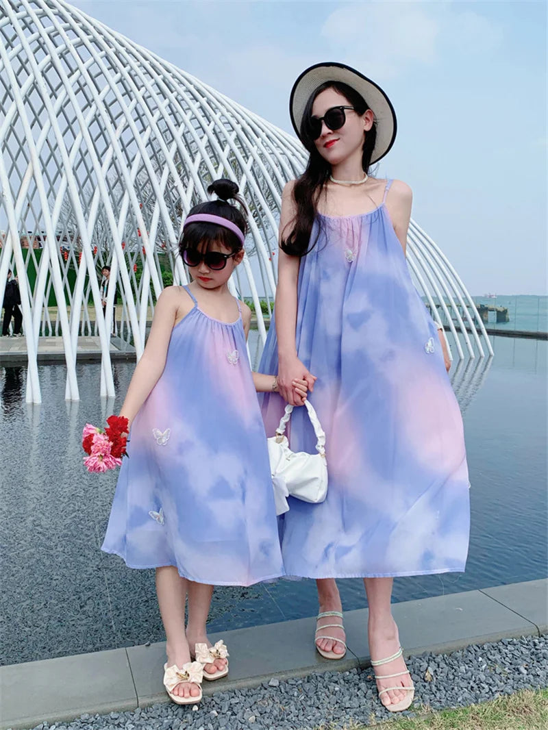 Fashion New Family Matching Outfits Dresses Mother Daughter Clothes Staining Suspender Dress Mom Kids Parent-child Dress Outfits
