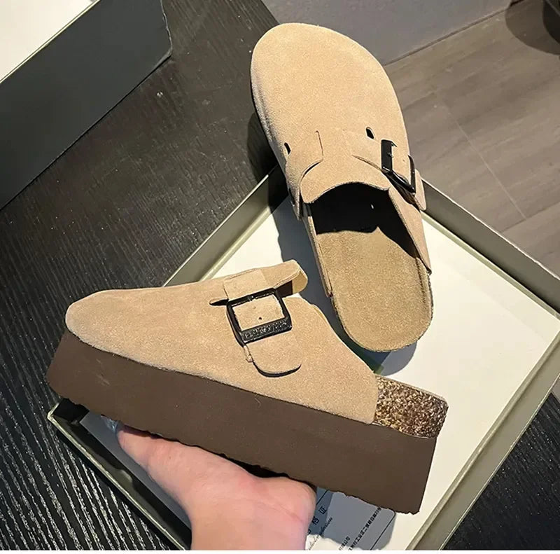 Fashion Outdoor Slip On Beach Sandalias Women's Suede Mules Slippers Platform Flats Boston Clogs Sandals
