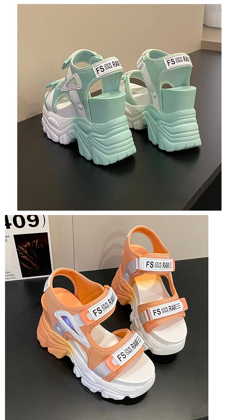 Fashion Summer Women Platform Sandals Wedges Thick Bottom Casual Mesh Shoes Woman 10.5CM High Heels Comfortable Sandals Sneakers