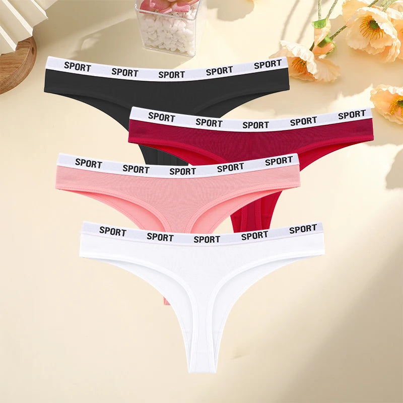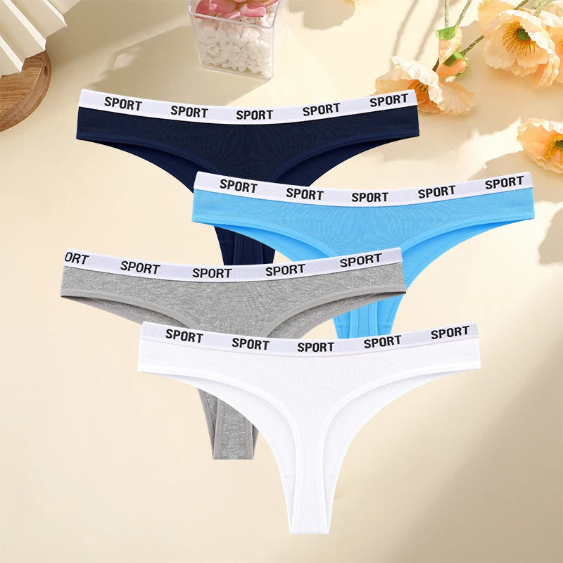 FINETOO Damen-Unterwäsche 2025 - 4er-Set Baumwoll-Strings für Sport elegante Marken-Tangas