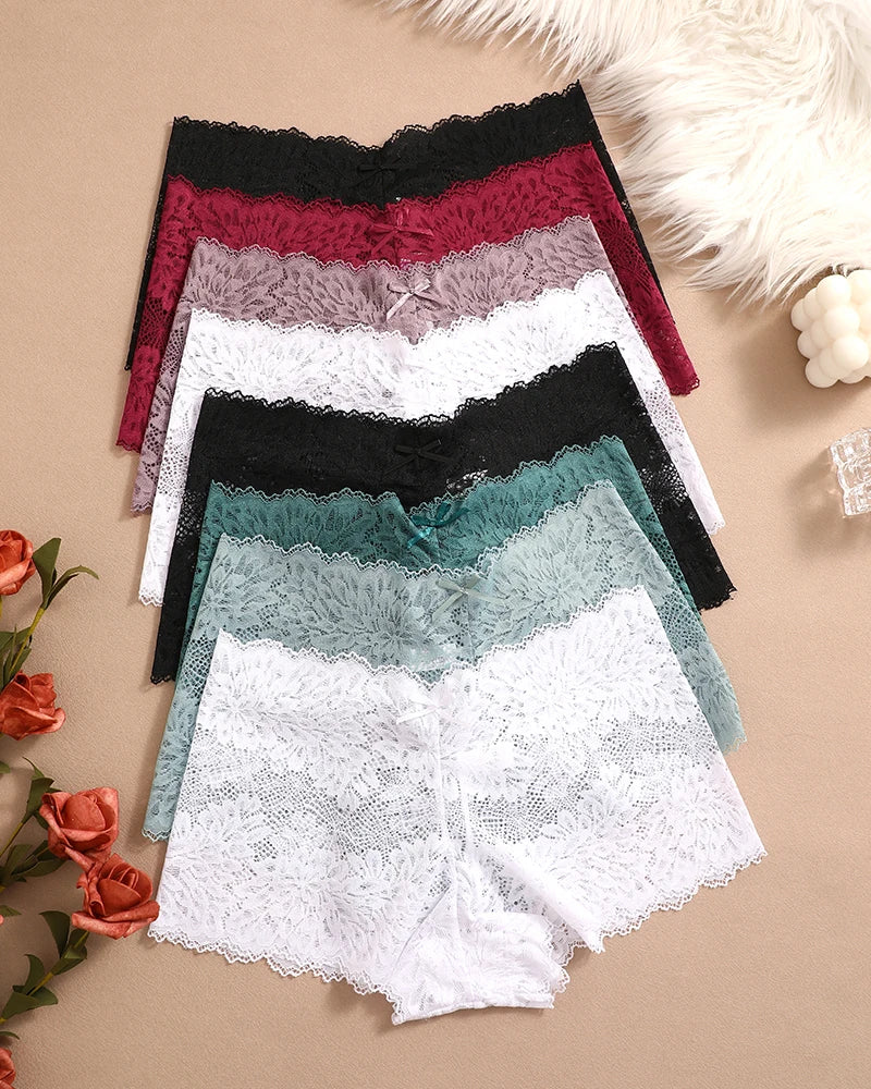 FINETOO 8Stk Frauen Blumen Spitze Höschen Hohe Taille Brief elegant Lingerie Höschen Brasilianische Unterhosen Femme Unterwäsche Bikini Intim
