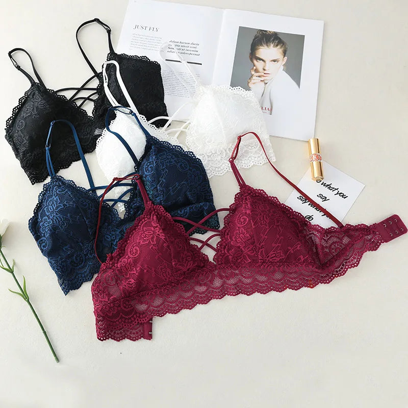 Floral Lace Bra Non-Wire Push Up Bras For Women Padded Brassiere Female Underwear elegant Lingerie V-neck Bralette Intimates