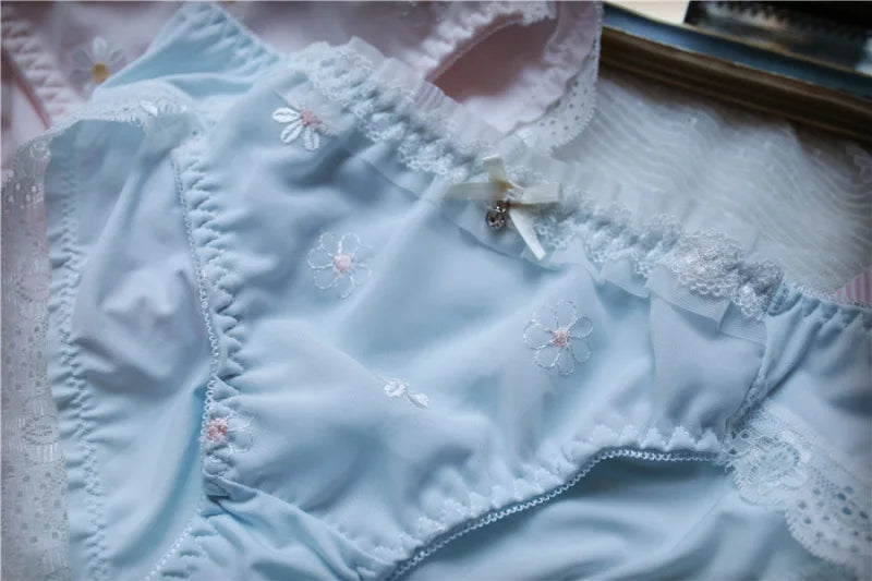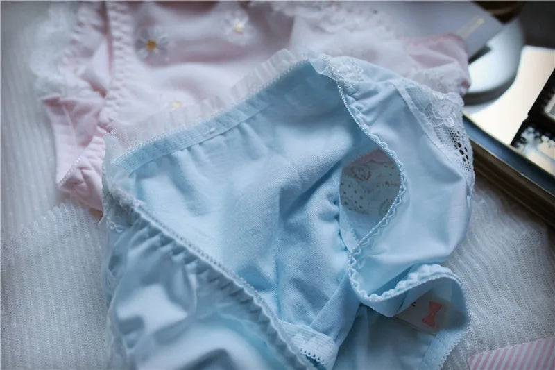 Flower Embroidery Milk Silk Panties Women elegant Lace Silky Smooth Seamless Female Underwear Cute Lovely Sweety Lingerie Breifs