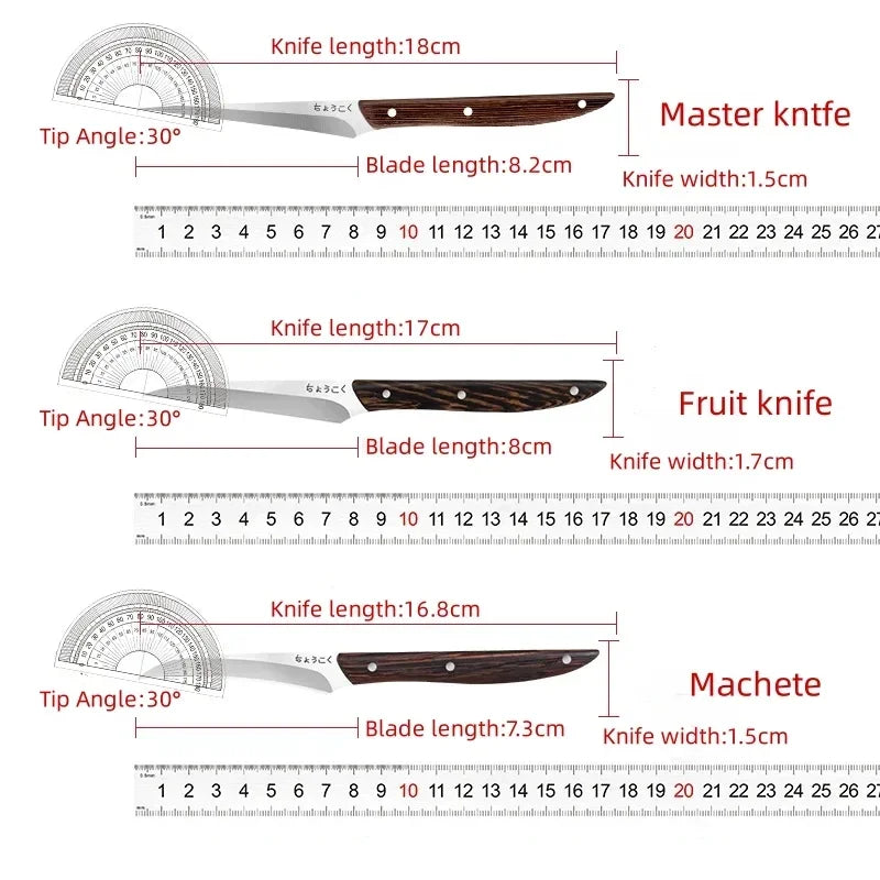 - Extrem scharfe Klingen ermöglichen feine Schnitte und detaillierte Muster, ideal für Obst- und Gemüseschnitzkunst.