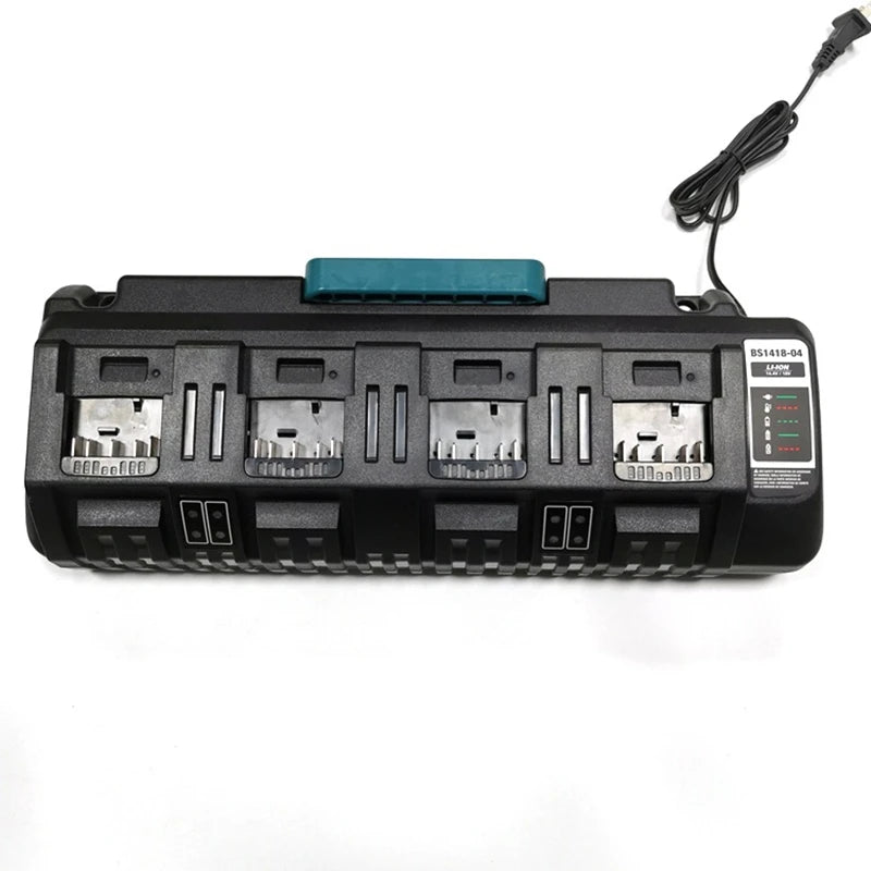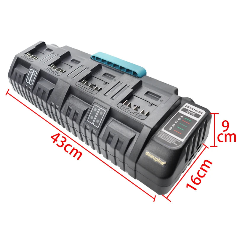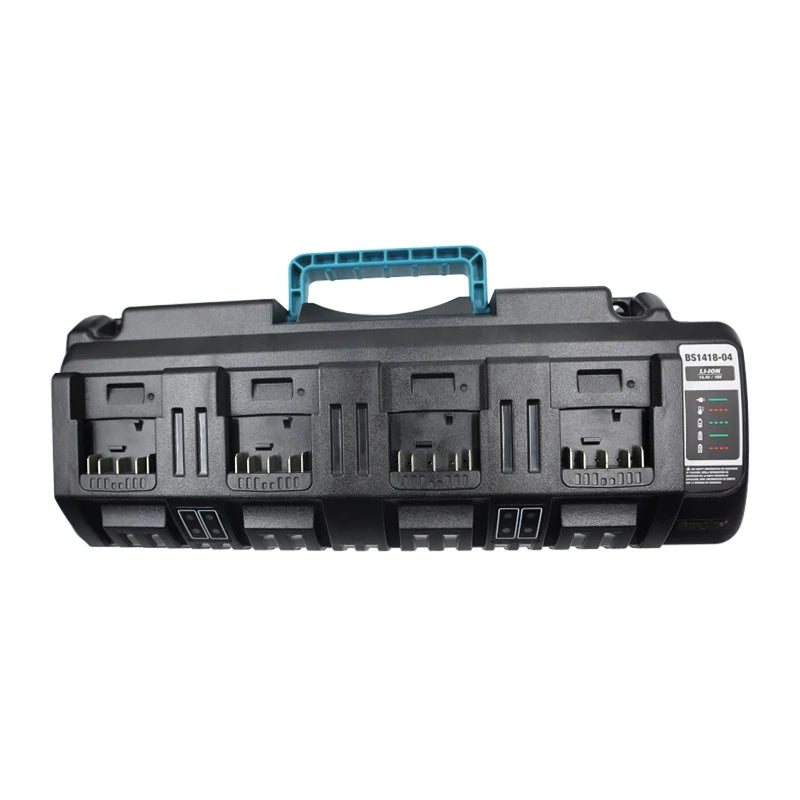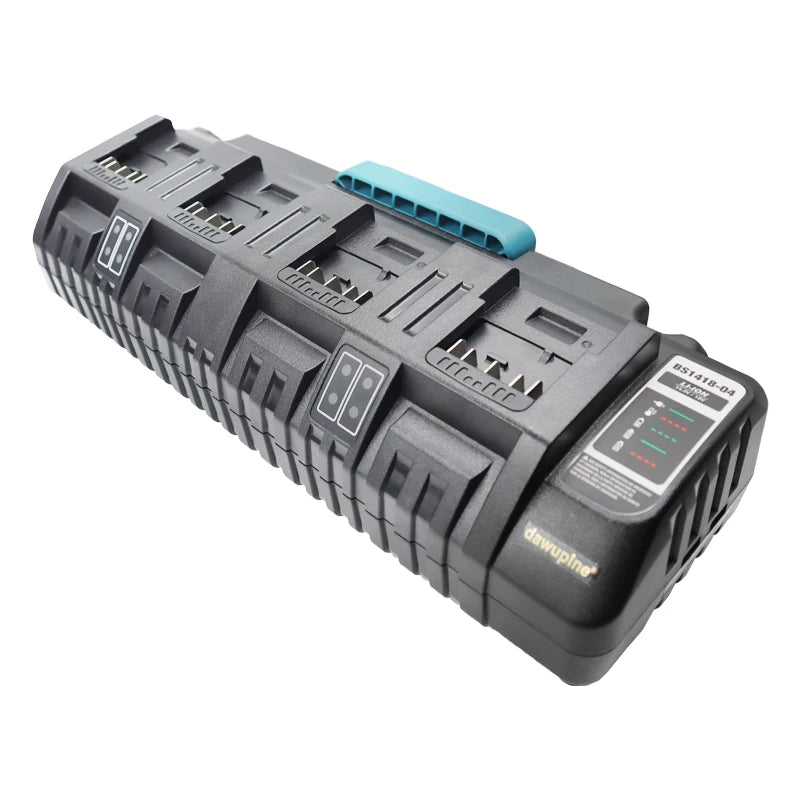 - Vier Ladestationen gleichzeitig ermöglichen paralleles Laden mehrerer Akkus – ideal für Werkstätten, Baustellen oder Heimwerker mit mehreren Geräten.