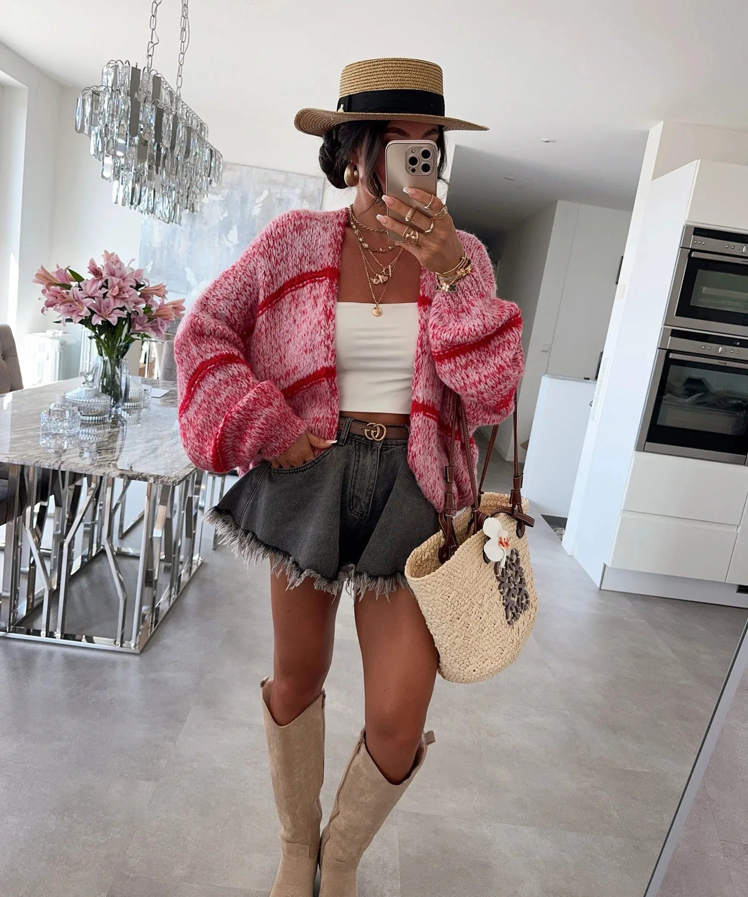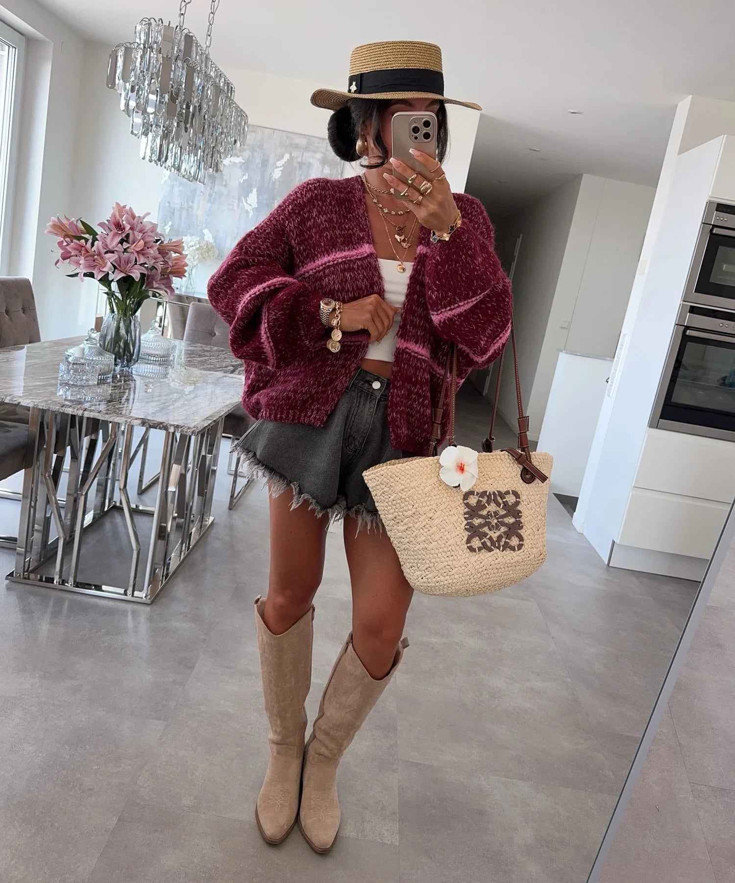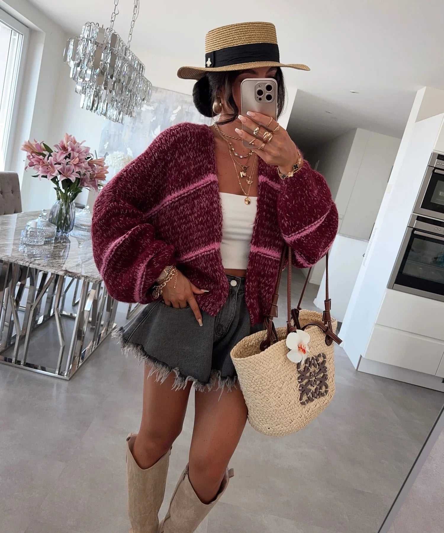 Die Luna Strickjacke verbindet kuschelige Wärme mit lässiger Eleganz und bietet eine vielseitige, leicht kombinierbare Silhouette für den Alltag und besondere Anlässe.
