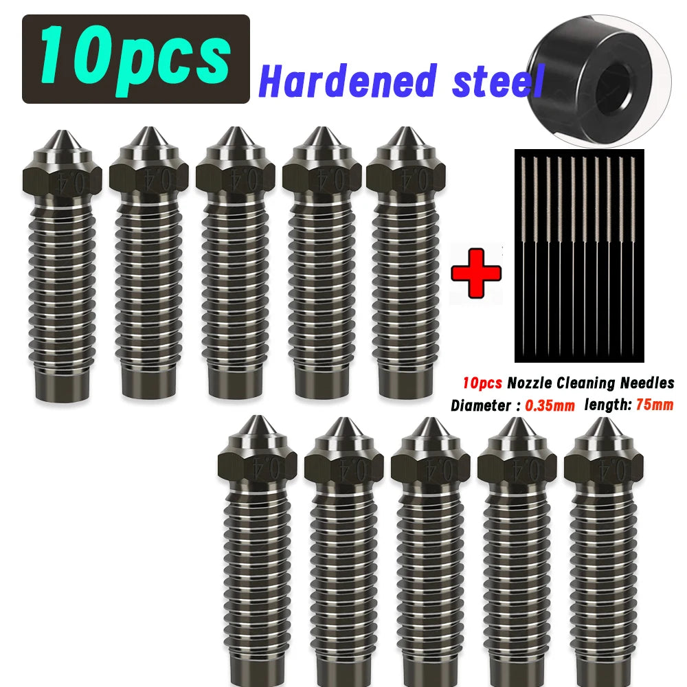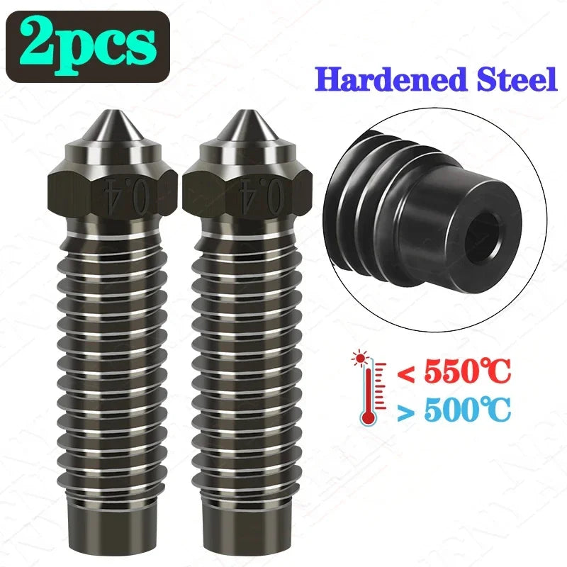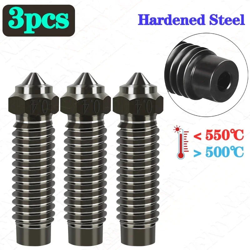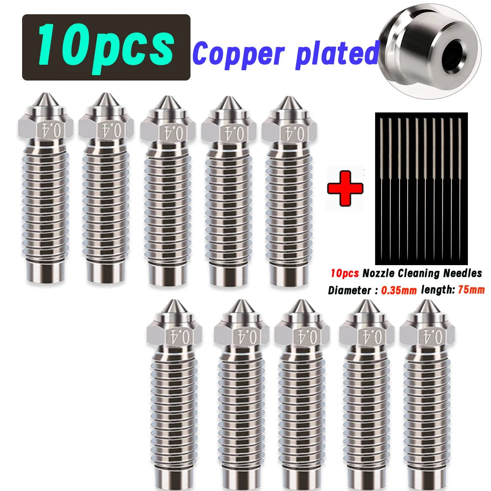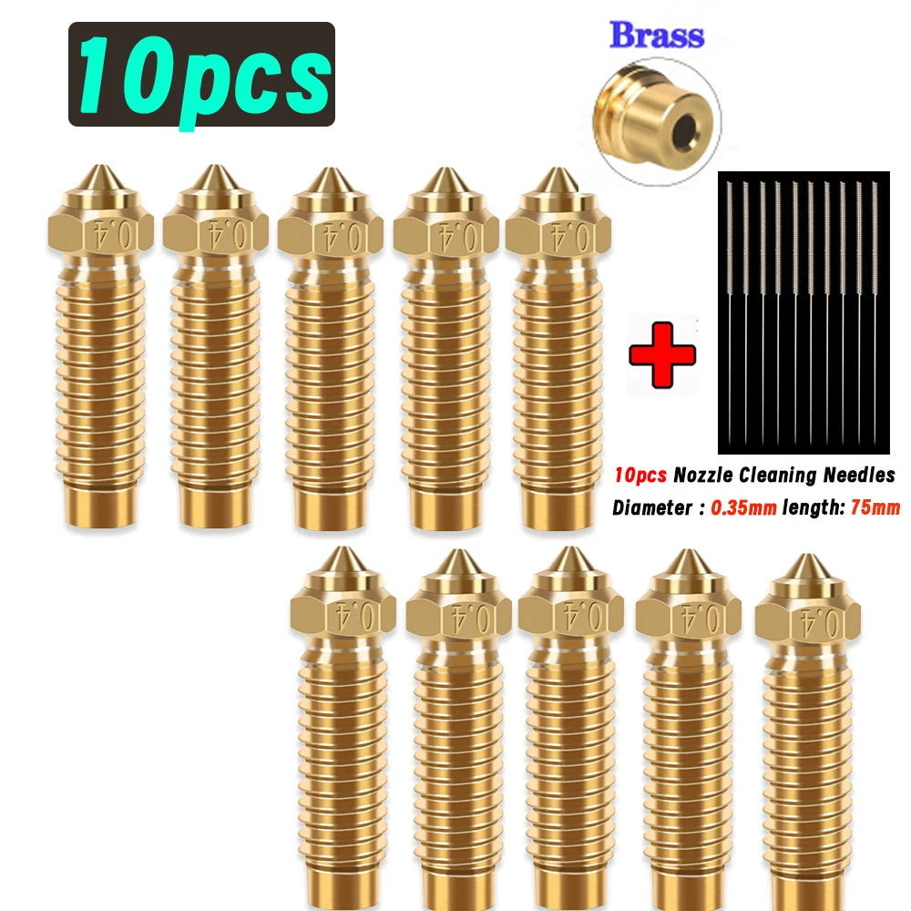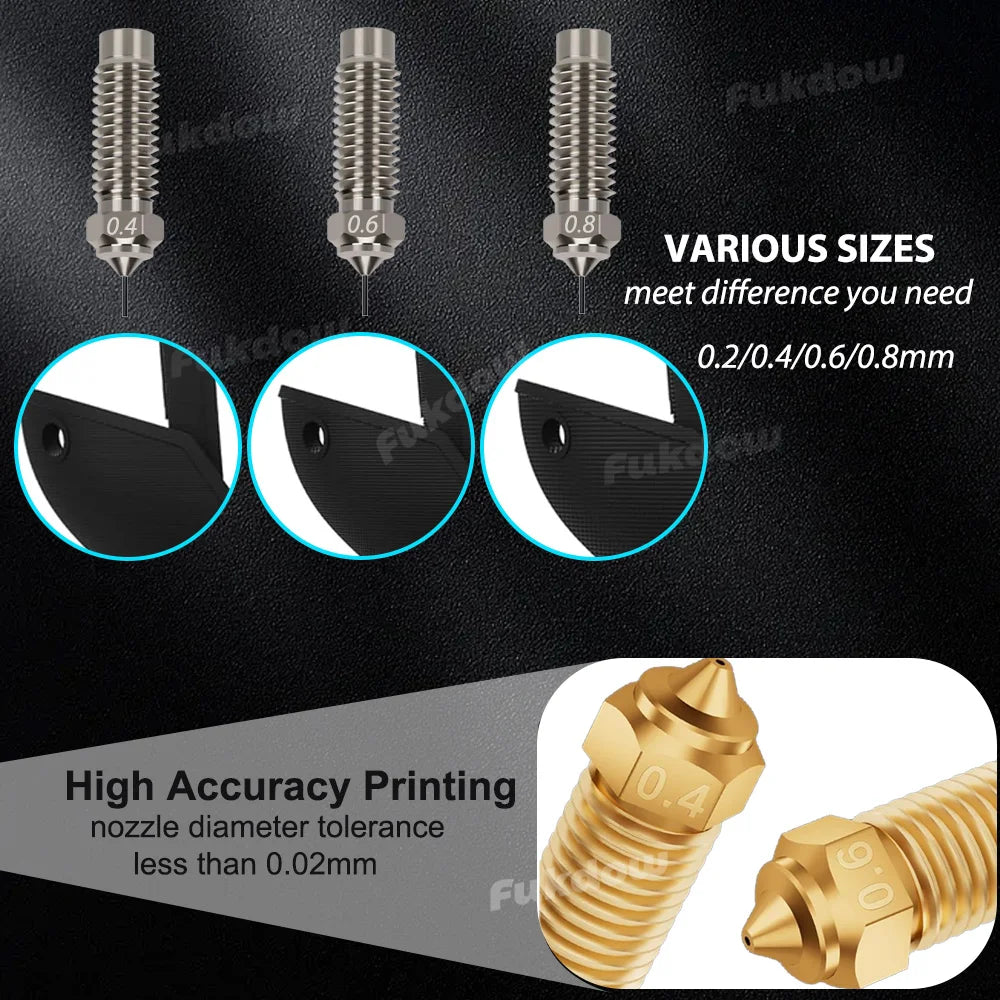 Erzielen Sie gleichmäßigere Drucke, kürzere Druckzeiten und eine verlängerte Lebensdauer Ihrer Düsen durch präzise gefertigte Nozzles aus gehärtetem Messing und Kupferbeschichtung.