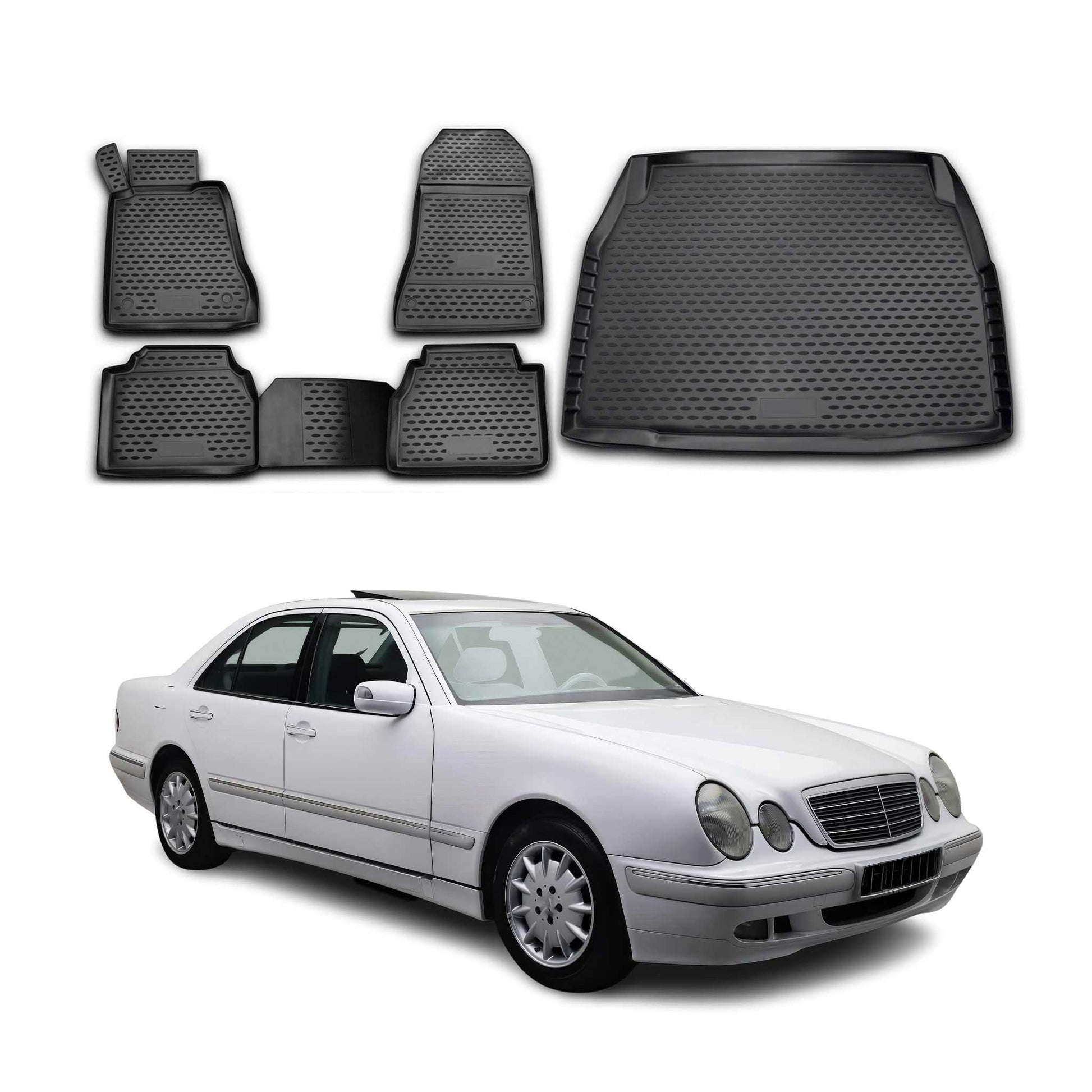 Fußmatten & Kofferraumwanne Set für Mercedes E Klasse W210 1995-2002 TPE Schwarz