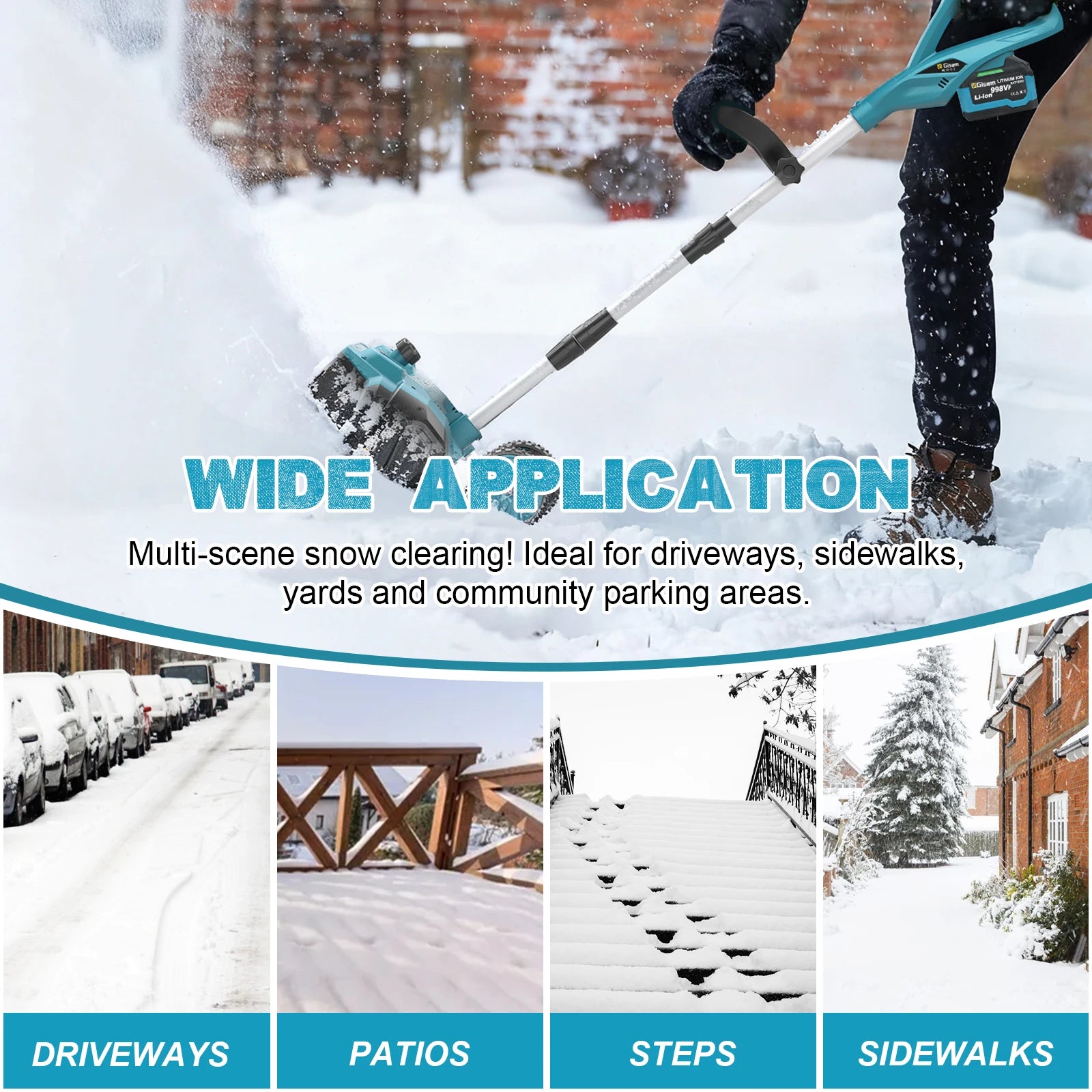 Gisam Schneepflug Bürstenlos - 4,5 Ah,3500 W, Breite 32 cm