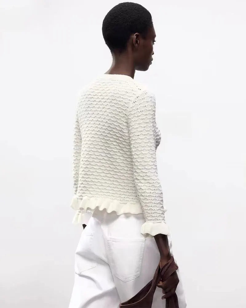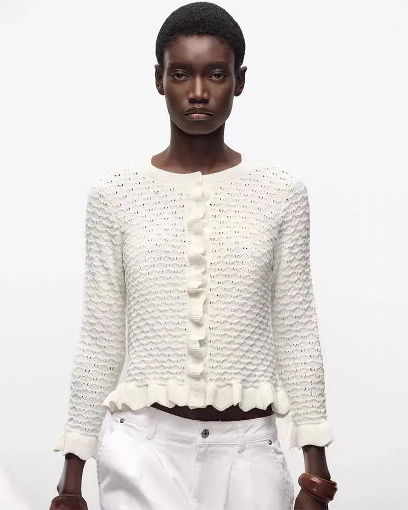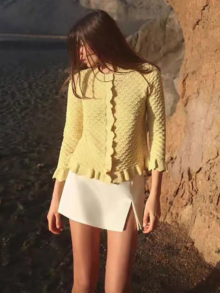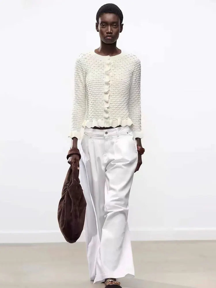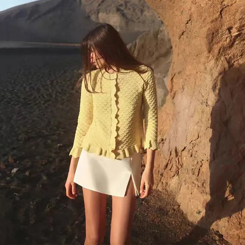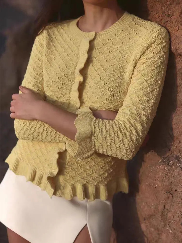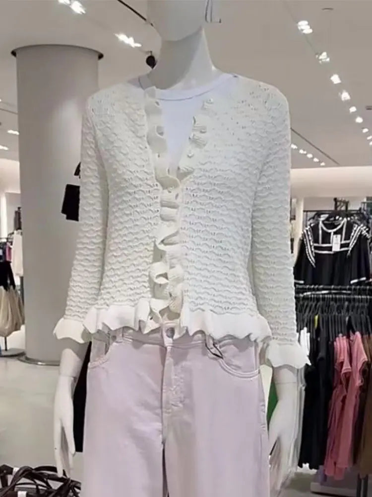 GACVGA Rüschen Strickjacke Chic – Eleganter Slim Fit für stilsicheren Alltagskomfort