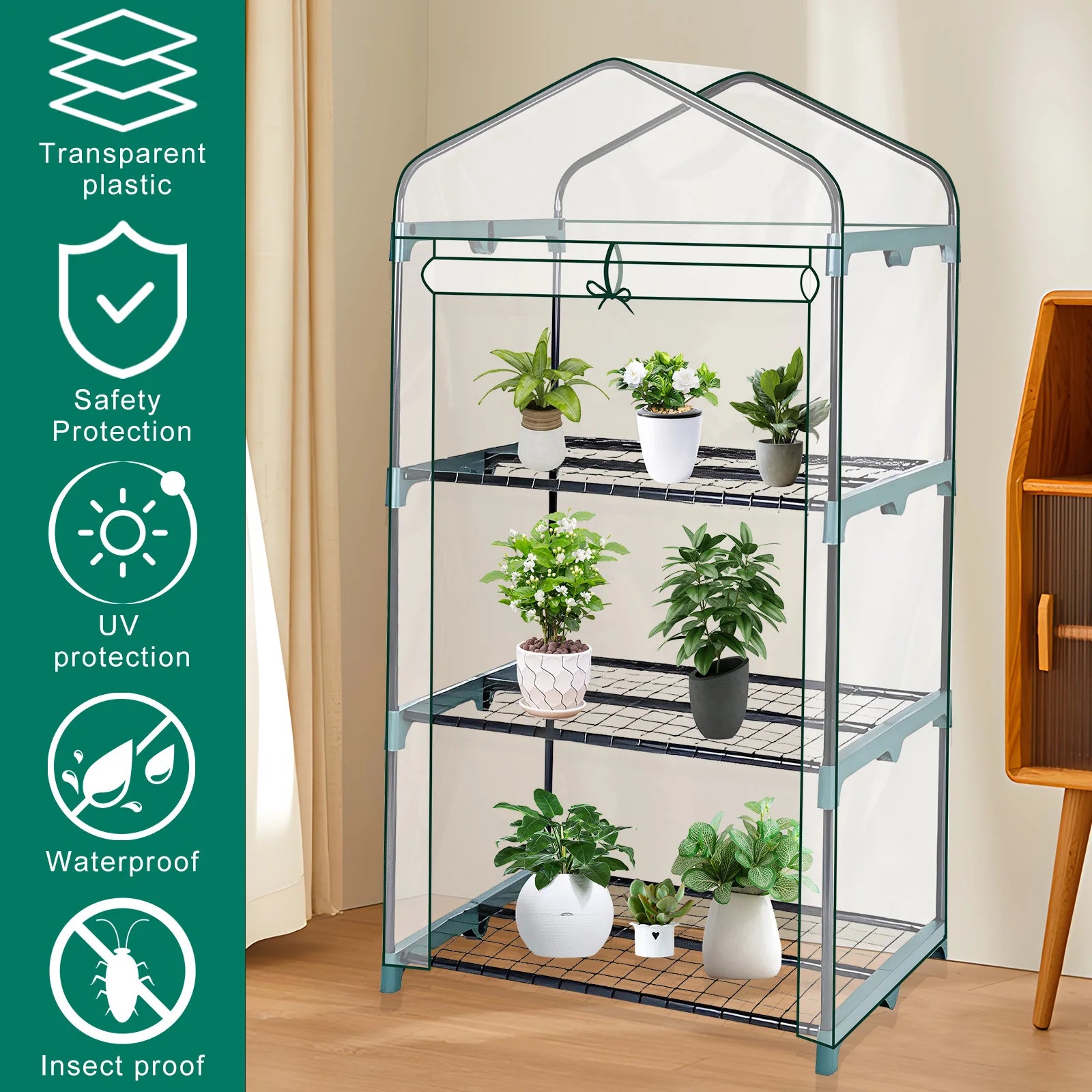 Garden Greenhouse Transparent Weatherproof Plant Grow House Cover with Roll up Double Zipper Door Small Waterproof Frost
