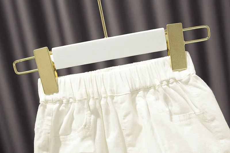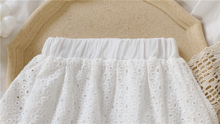 Girls Outfit Set 2022 Summer Clothing Sets Hollow Lace Suit Baby Casual Sleeveless T-shirt+Shorts Kids Clothes Sets Baby Clothes