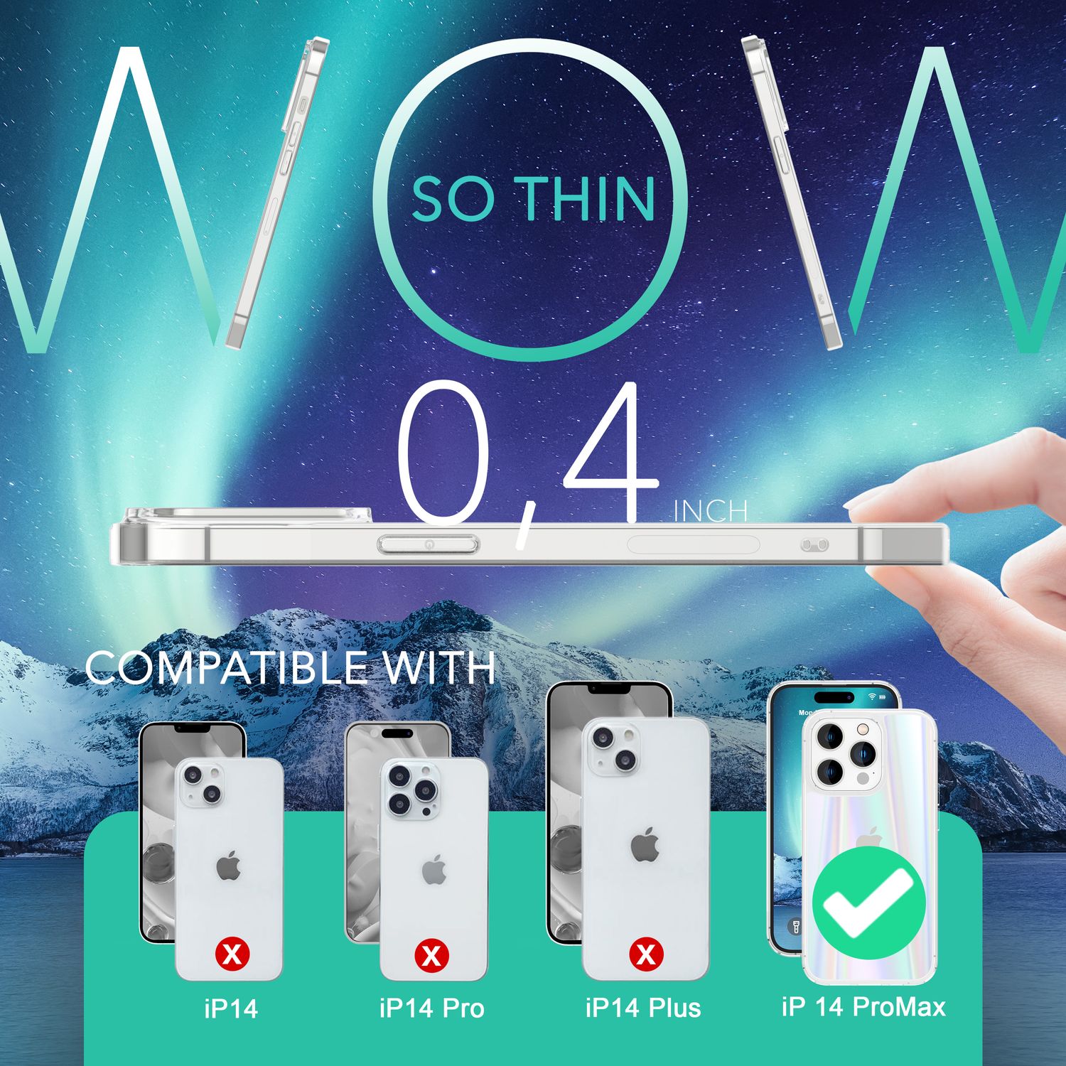 NALIA Berlin Aurora Hartglas Cover Regenbogen Effekt - Kompatibel iPhone 14 Pro Max, Transparent Glas, Leichtes Gewicht