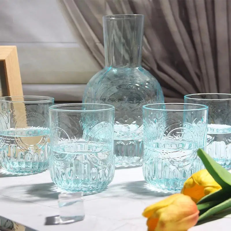 Glass Embossed Cold Water Kettle Set, European Style, Vintage Water Cooler, Household Kettle, Five Piece Water Set