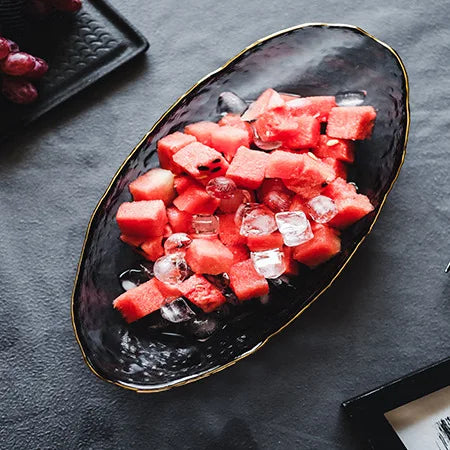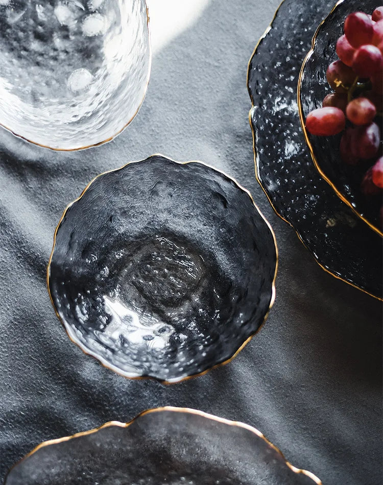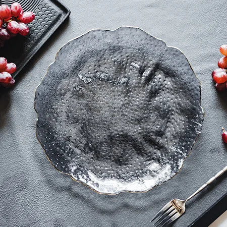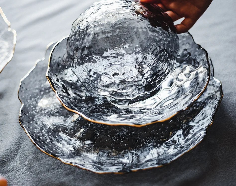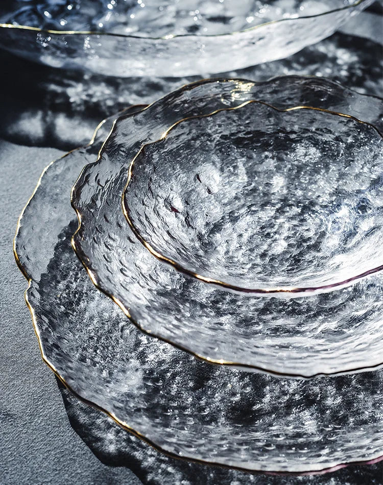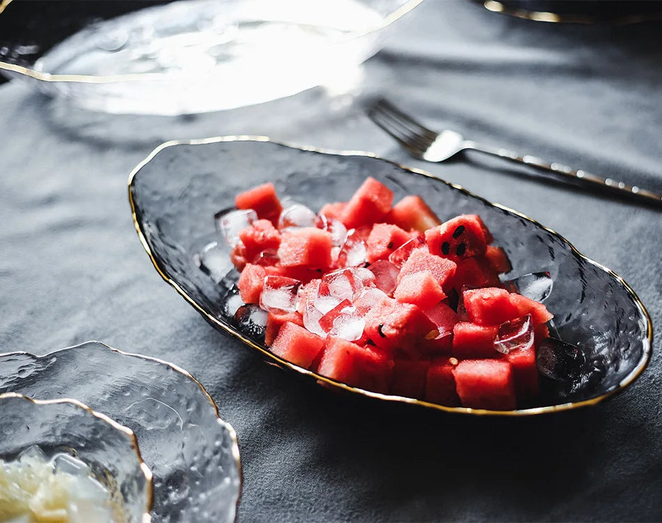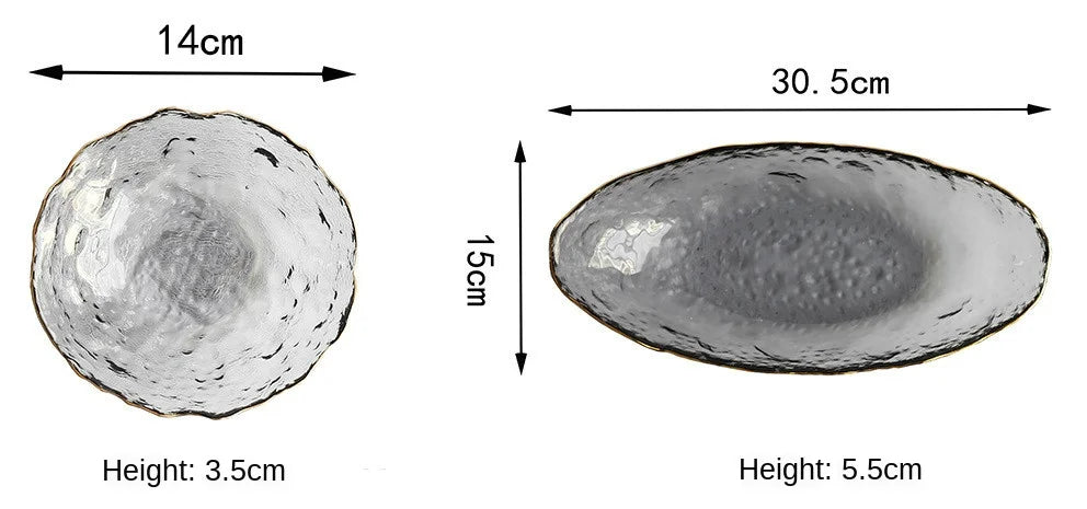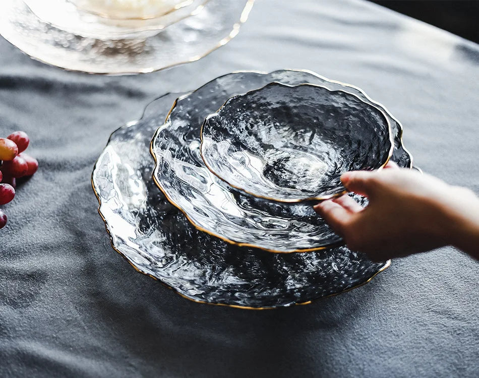 Glass Plate Irregular Dinner Plates Gold Glass Dishes Creative Salad Bowl Transparent Plate Glass Bowl and Dish Set Dessertplate