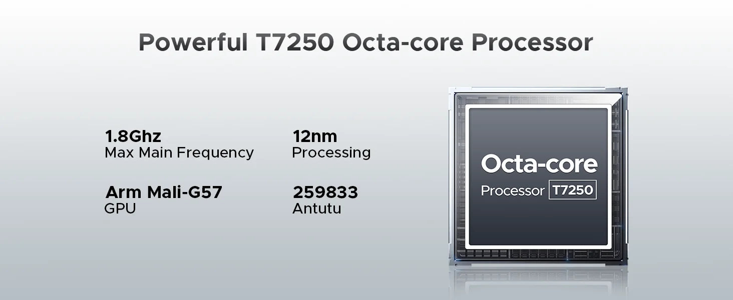 - Unisoc T7250 Octa-Core-Prozessor mit ausreichender Leistung für Alltags-Apps, Kamera-Apps und Video-Streaming