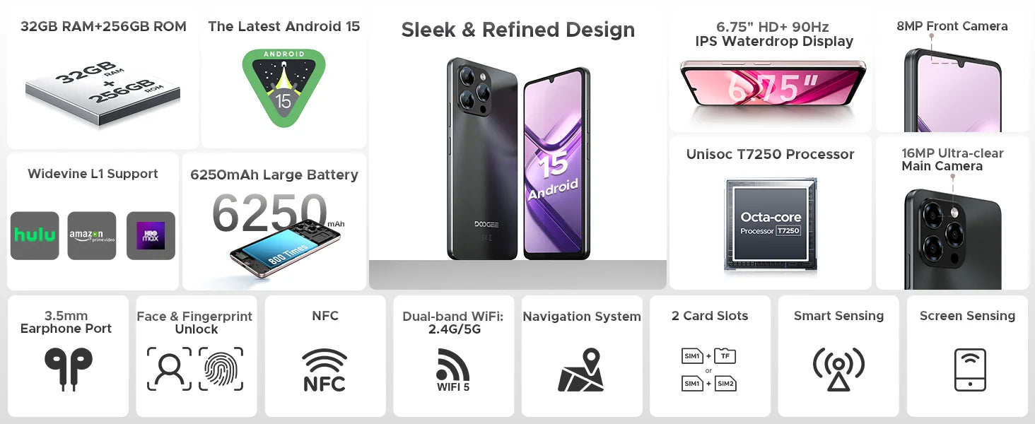 DOOGEE Note58 Pro NFC - 6250mAh Akku, 256GB Speicher, 6,75Zoll Display