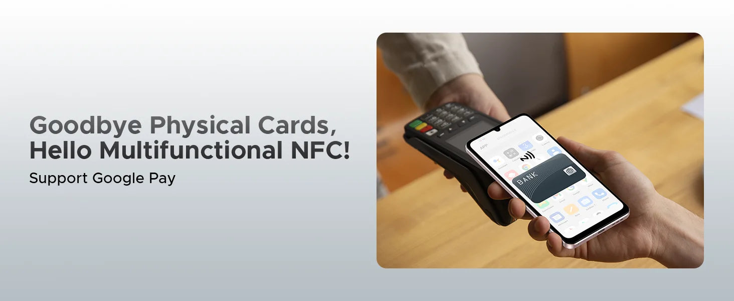 - Problem: Fehlende NFC-Funktion für kontaktloses Bezahlen. Lösung: Eingebautes NFC-Modul – einfaches Bezahlen und schnelles Pairing mit kompatiblen Geräten.