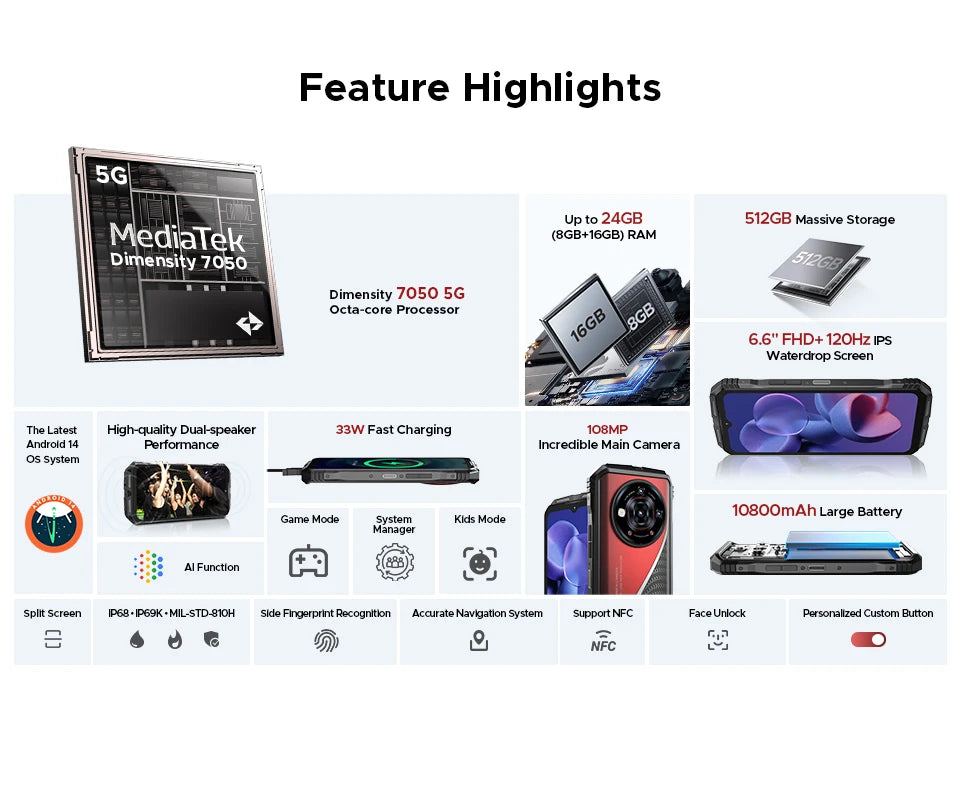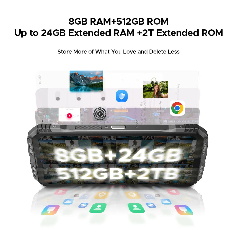 - Problem: Speicherplatzmangel und langsames Hochfahren. Lösung: Großzügige RAM-/ROM-Konfigurationen plus TF-Karten-Slot bis 2 TB – Platz für Apps, Fotos, Videos und Dokumente ohne Kompromisse.