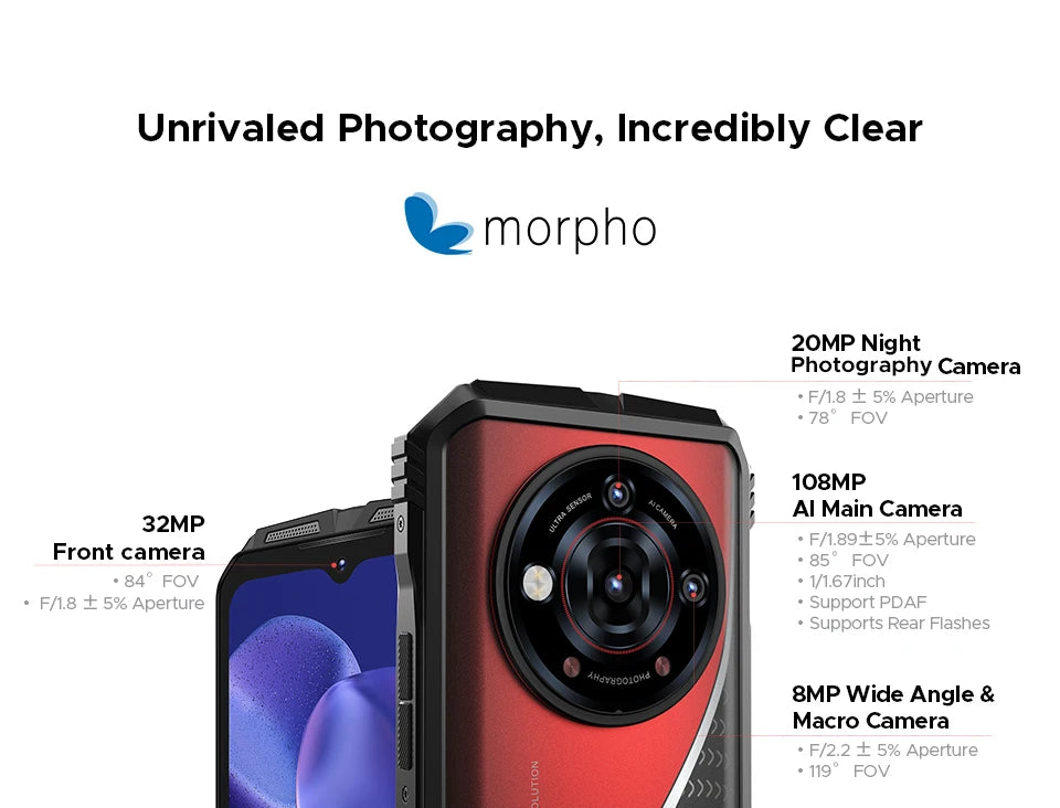 108MP AI Main Camera 20MP Night Photography Camera+8MP Wide Angle & Macro Camera |