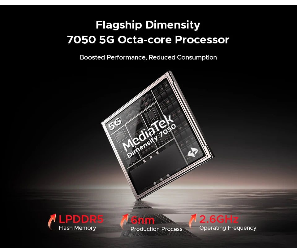 - Dimensity 7050 Octa Core mit 2,6 GHz und Effizienz-+Performance-Optimierung – für reibungslose Multitasking-Erlebnisse.