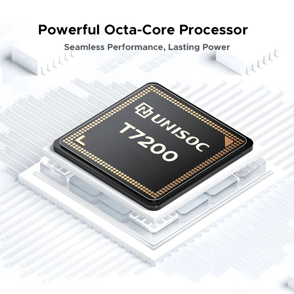- Octa‑Core‑Prozessor Unisoc T7200 sorgt für flüssiges Multitasking, schnelles Öffnen von Apps und reibungsloses Scrollen durch Inhalte.
