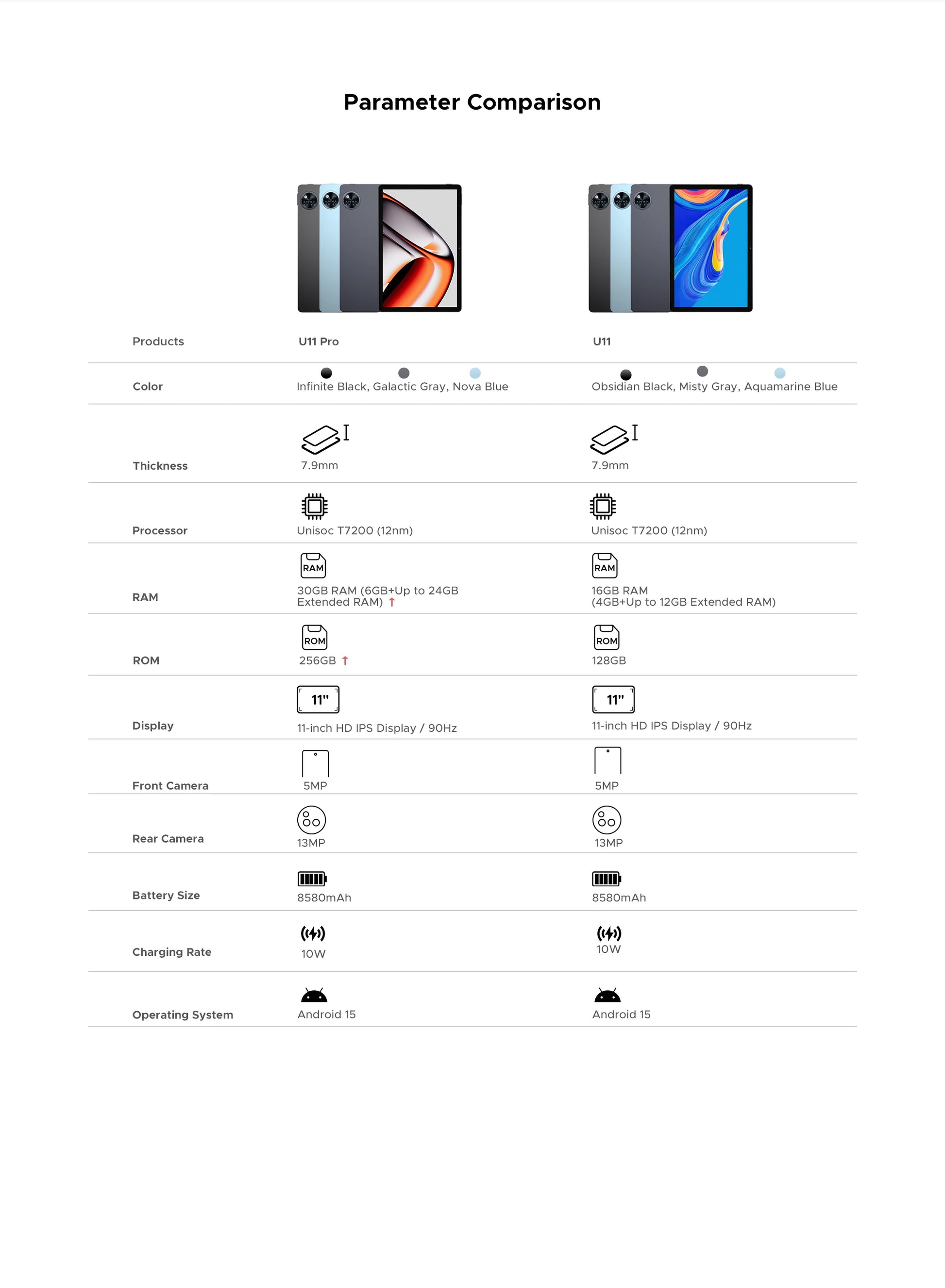 DOOGEE U11 Pro Tablet – Android 15, 11" Display, 8580 mAh, 256 GB