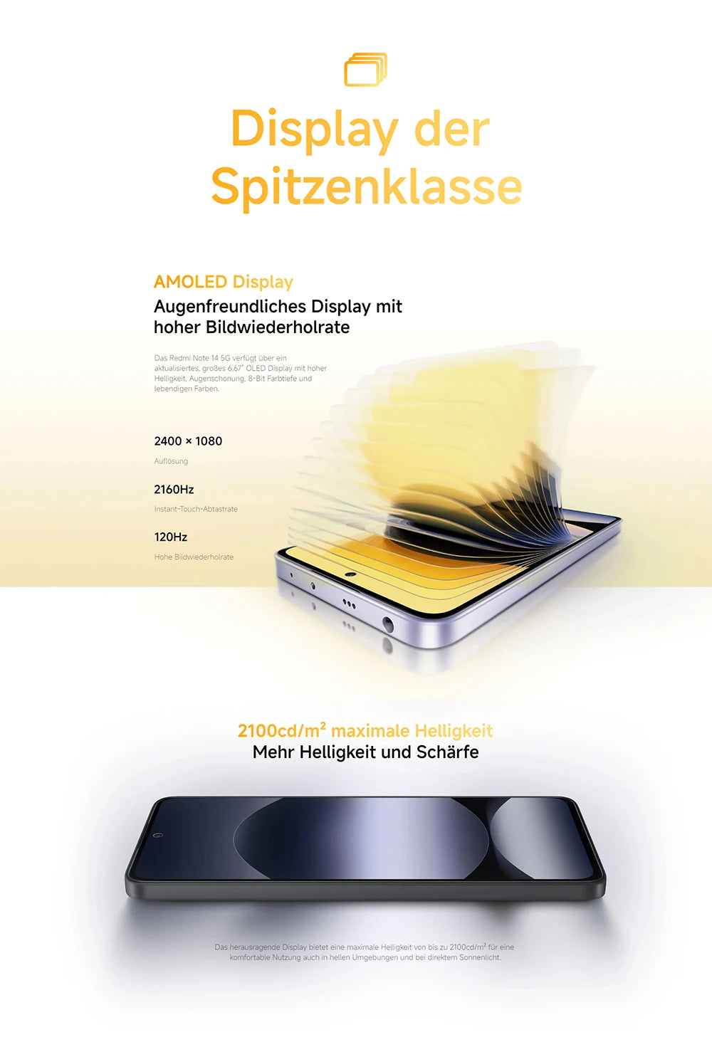 Xiaomi Redmi Note 14 5G 108MP Kamera - 5110 mAh Akku, 45 W Turbo-Ladung