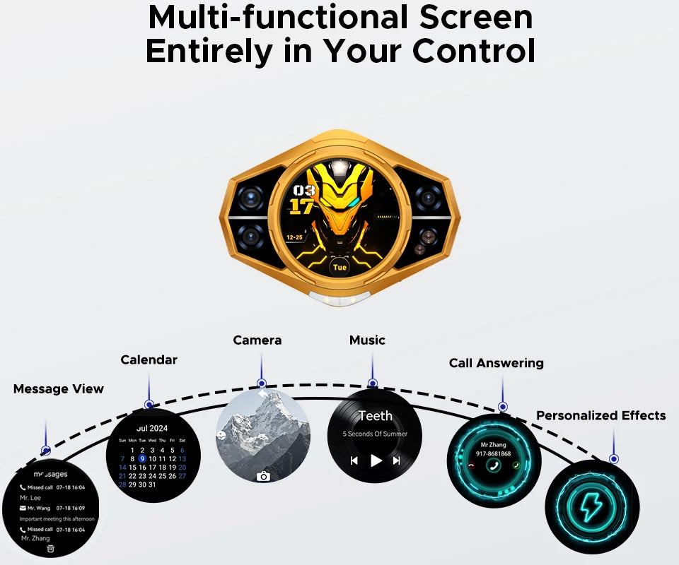 Hintere Anzeige | „1,32“ AMOLED multifunktionales rundes hinteres Display“ |
