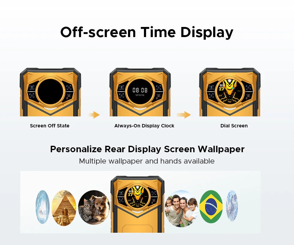 - Rückdisplay bietet Quick-Infos, Statusanzeigen und Benachrichtigungen, ohne das Hauptdisplay zu strapazieren